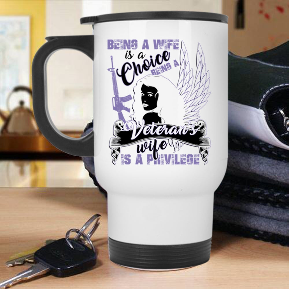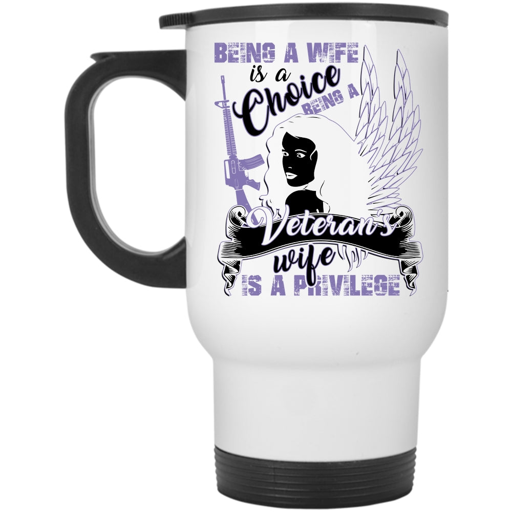 Being A Veteran's Wife Is A Privilege Travel Mug, Being A Wife Is A Choice Mug