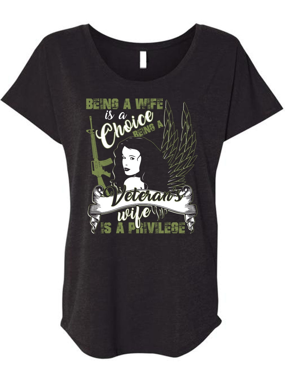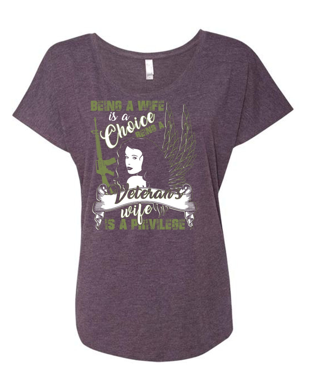 Being A Wife Is A Choice T Shirt, Being A Veteran's Wife T Shirt, Cool Shirt (Ladies' Triblend Dolman Sleeve)