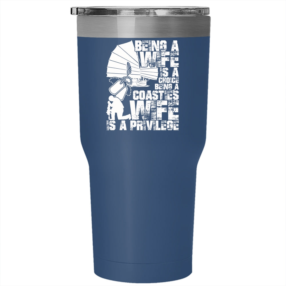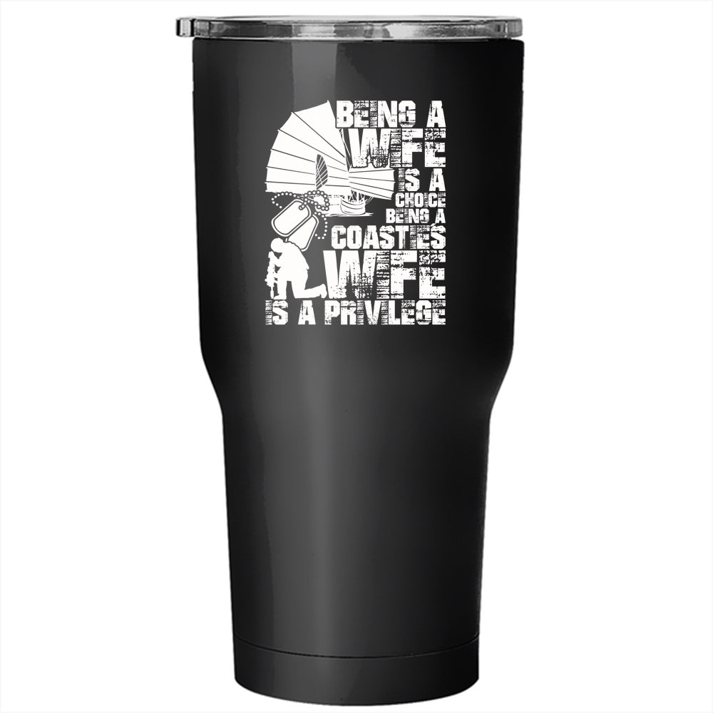 Being A Wife Is A Choice Tumbler 30 oz Stainless Steel, Being A Coastie's Wife Is A Privilege Travel Mug
