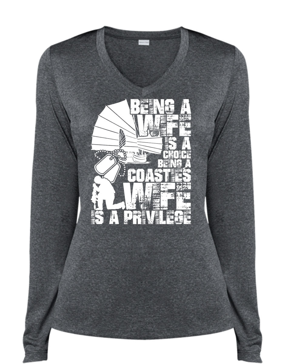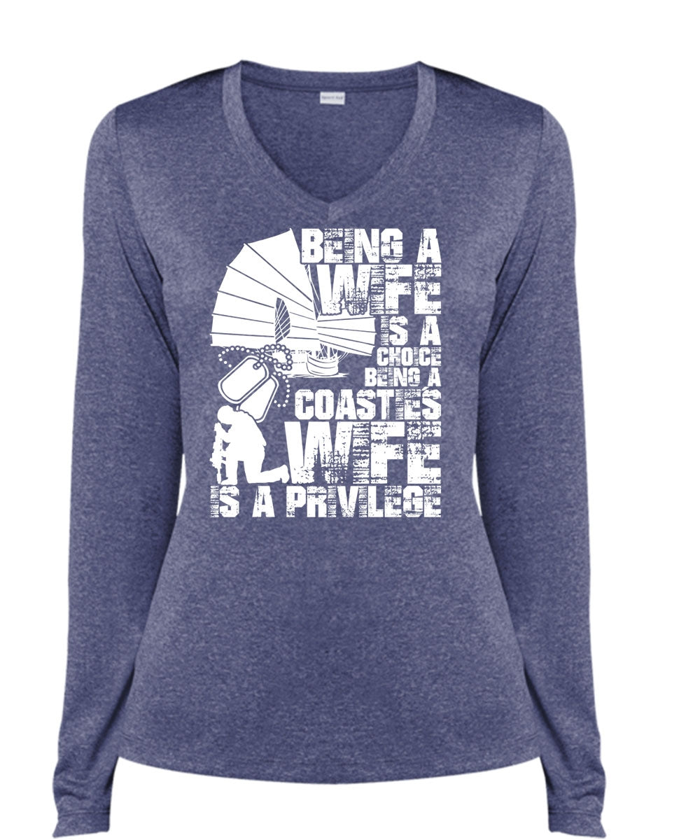 Being A Wife T Shirt, Coasties Wife T Shirt, Cool Shirt (Ladies LS Heather V-Neck)