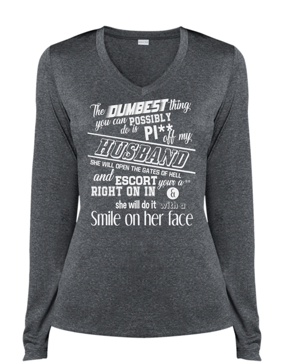 Being My Husband T Shirt, She Will Do It With Smile T Shirt, Cool Shirt (Ladies LS Heather V-Neck)
