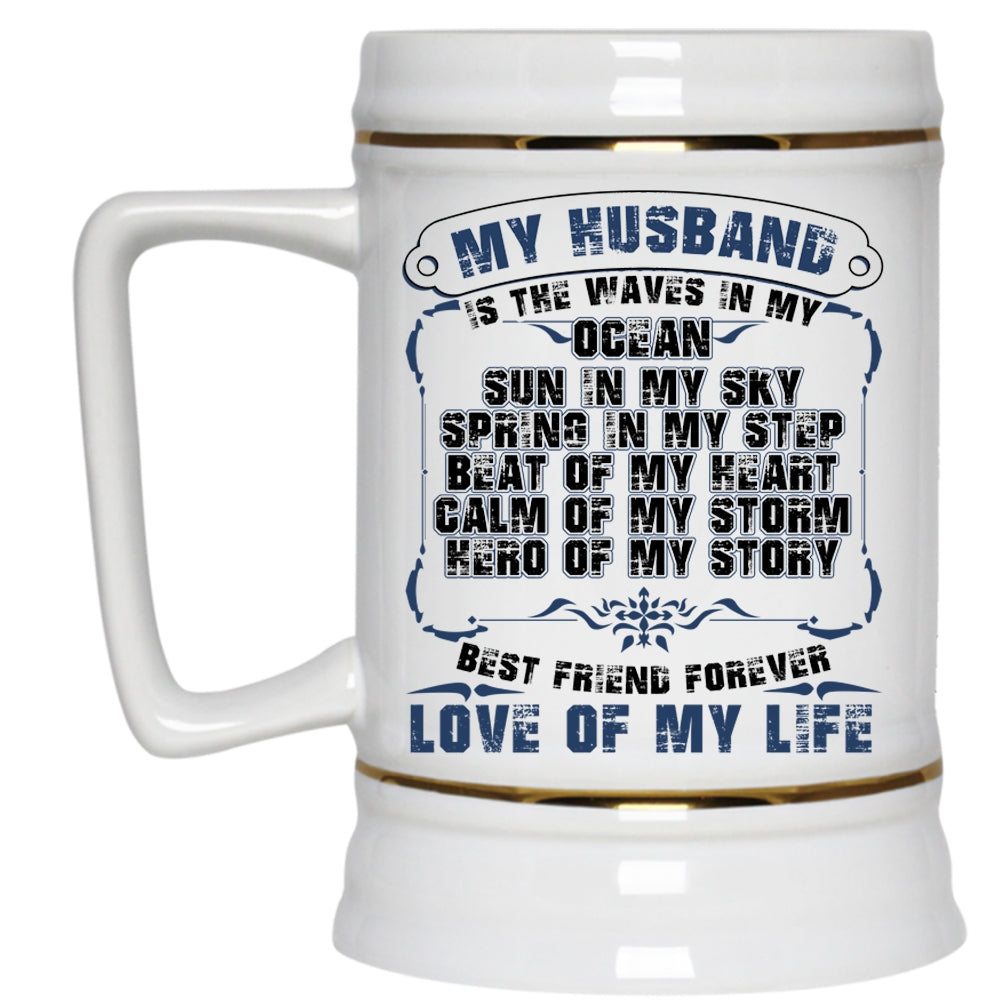 Best Friend Forever Love Of My Life Beer Stein 22oz, My Husband Is The Waves In My Ocean Beer Mug