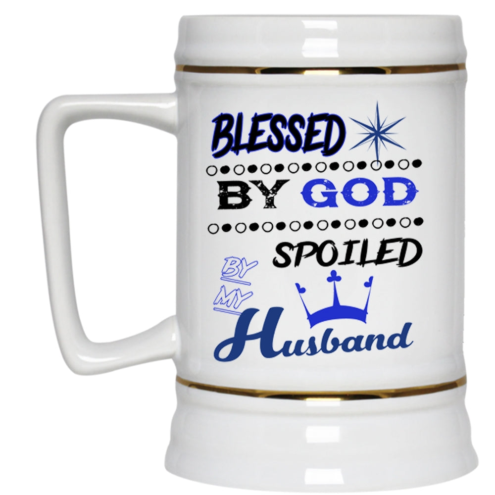 Blessed By God Spoiled By My Husband Mug, Marry Cup (Beer Mug)