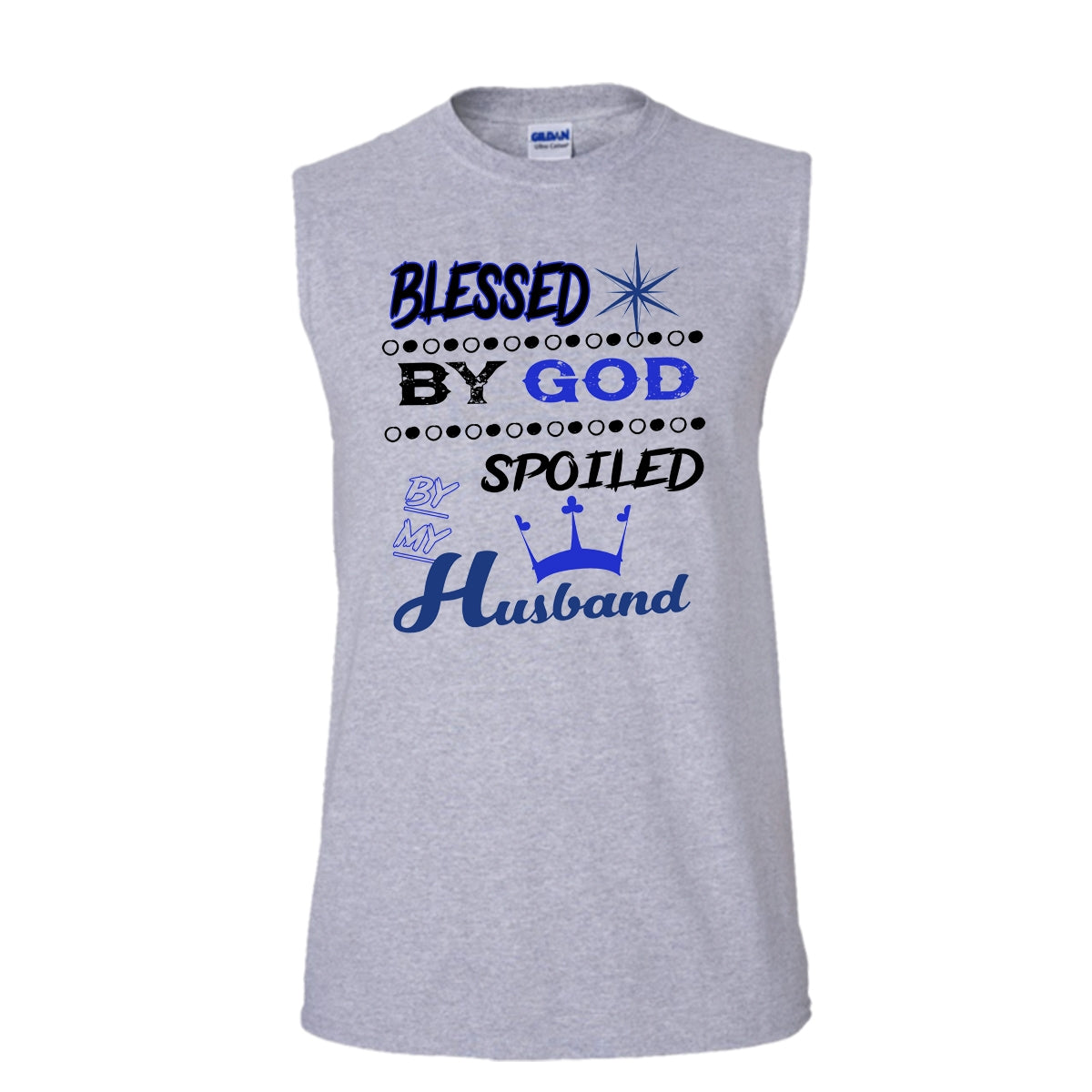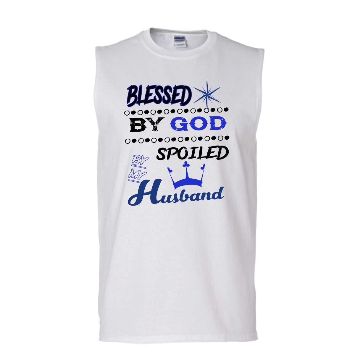 blessed By God Spoiled By My Husband Shirt, Cool Husband Shirt (Men's Cotton Sleeveless)