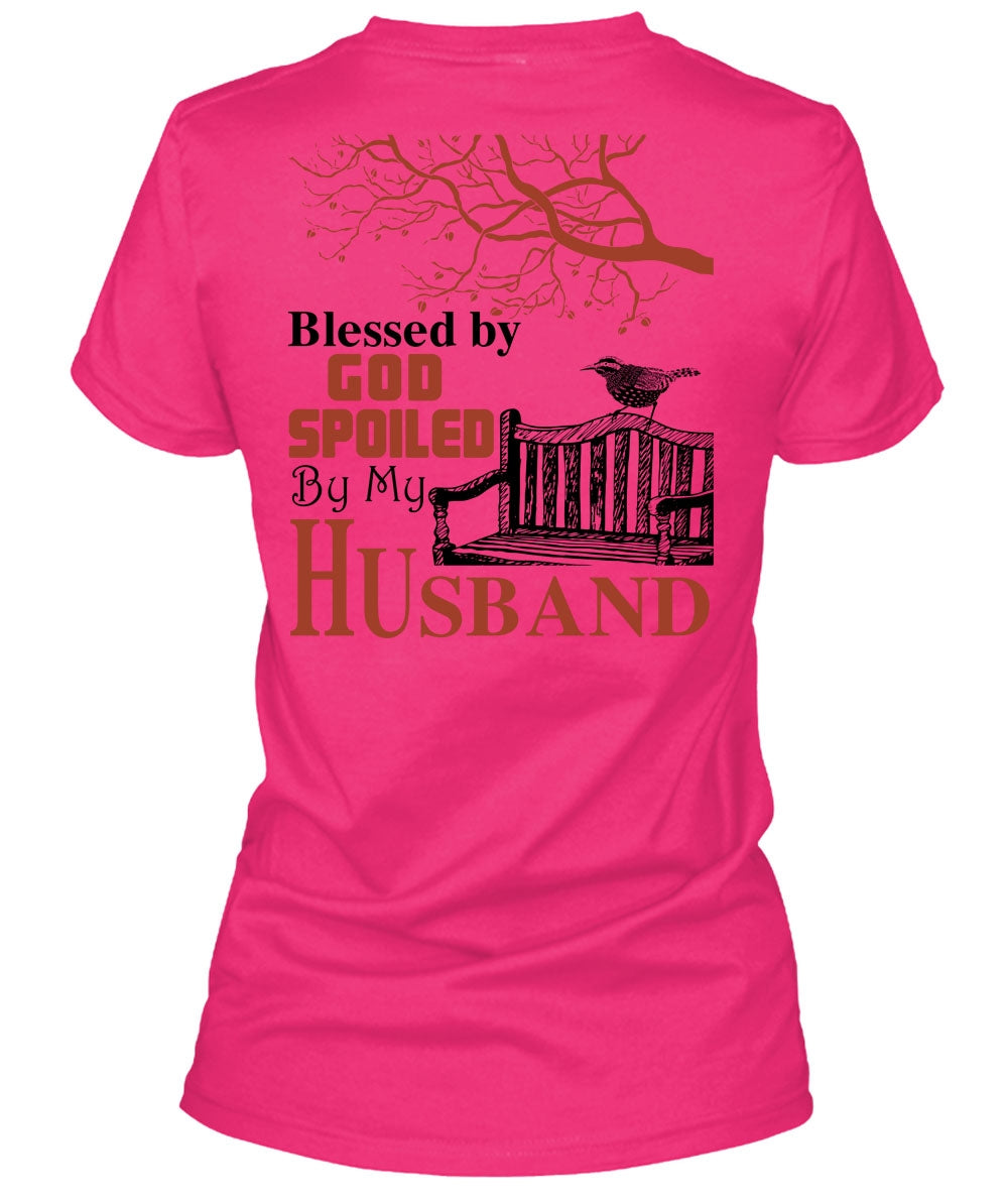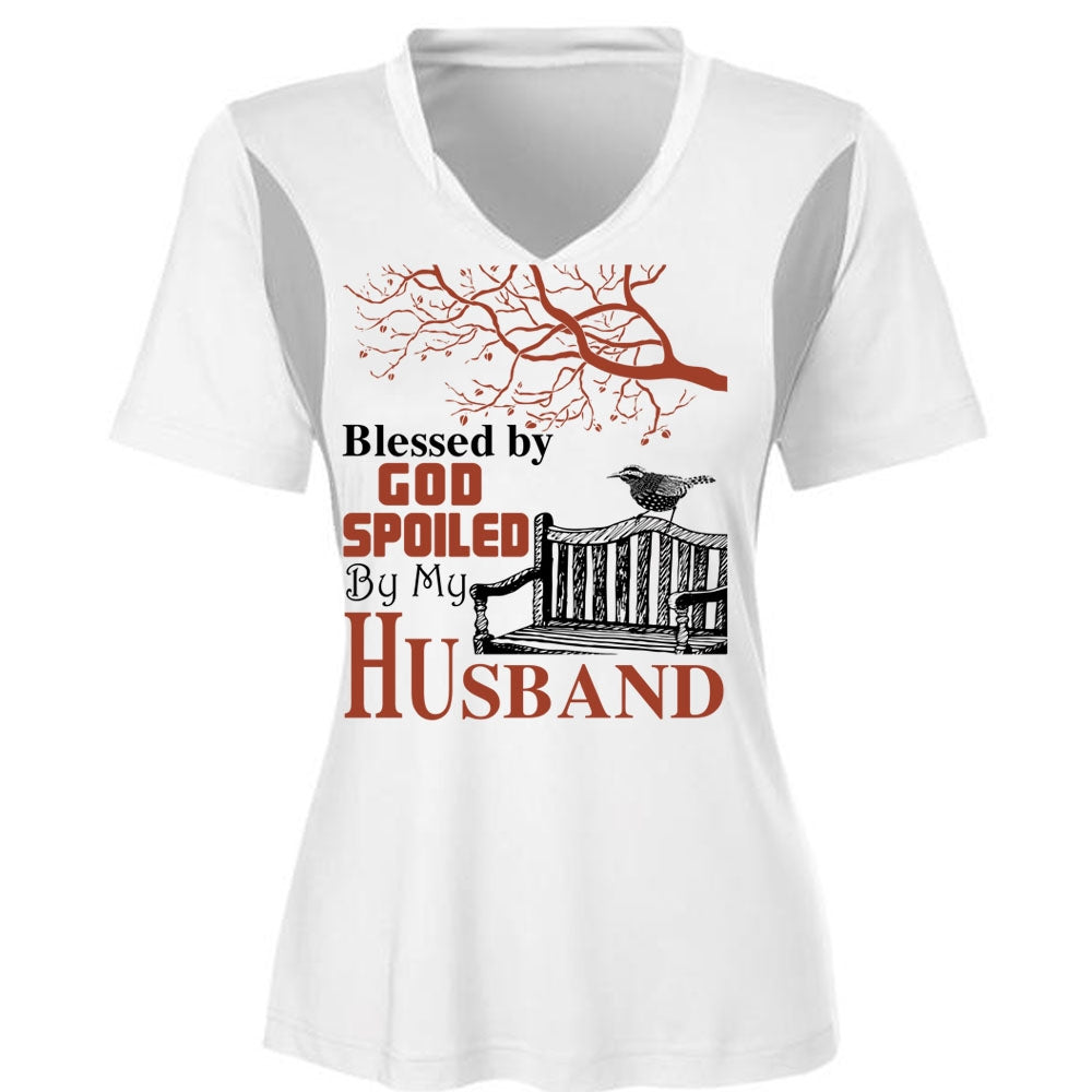Blessed By God Spoiled By My Husband T Shirt, Being A Wife T Shirt, Cool Shirt (Ladies LS Heather V-Neck)