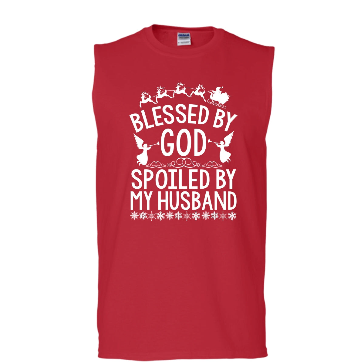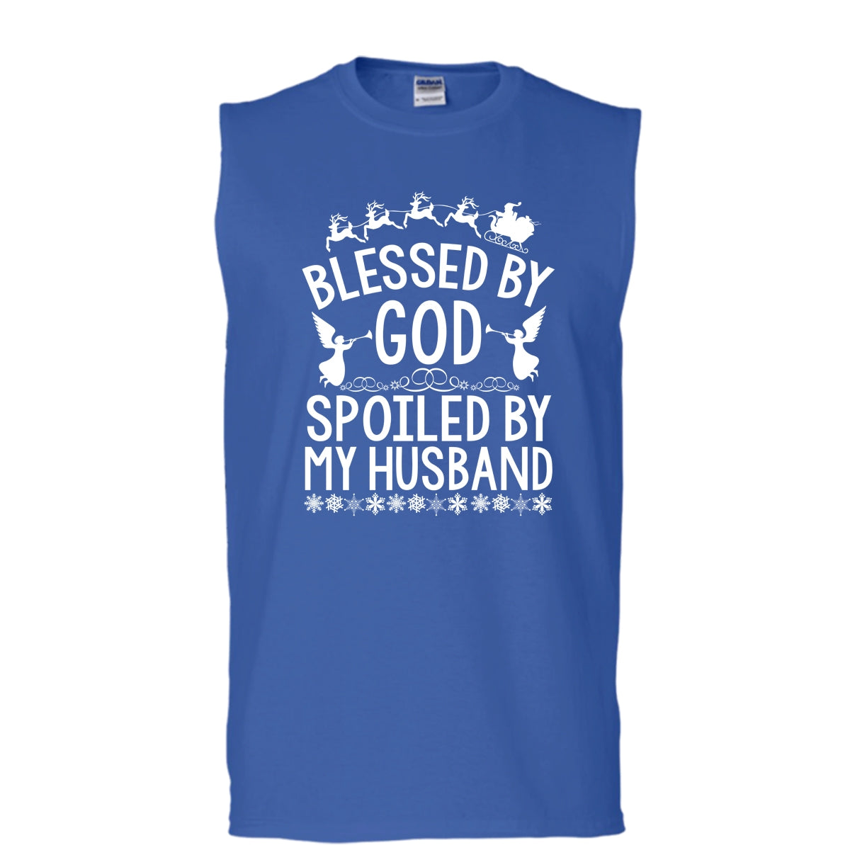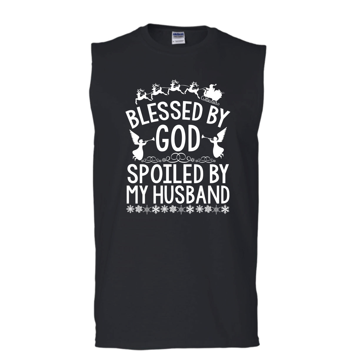 Blessed By God T Shirt, Spoiled By My Husband Tank Top (Men's Cotton Sleeveless)