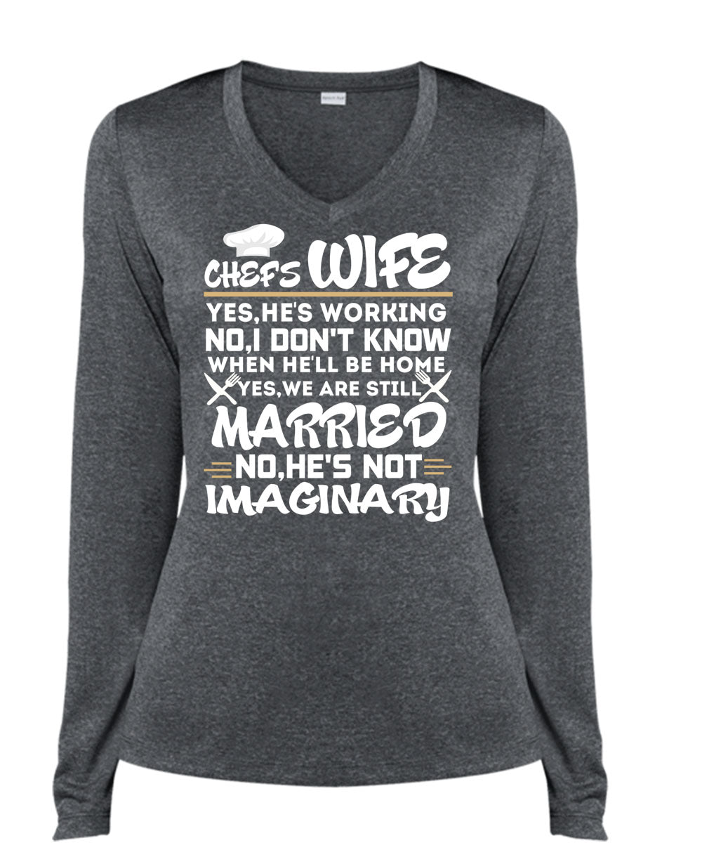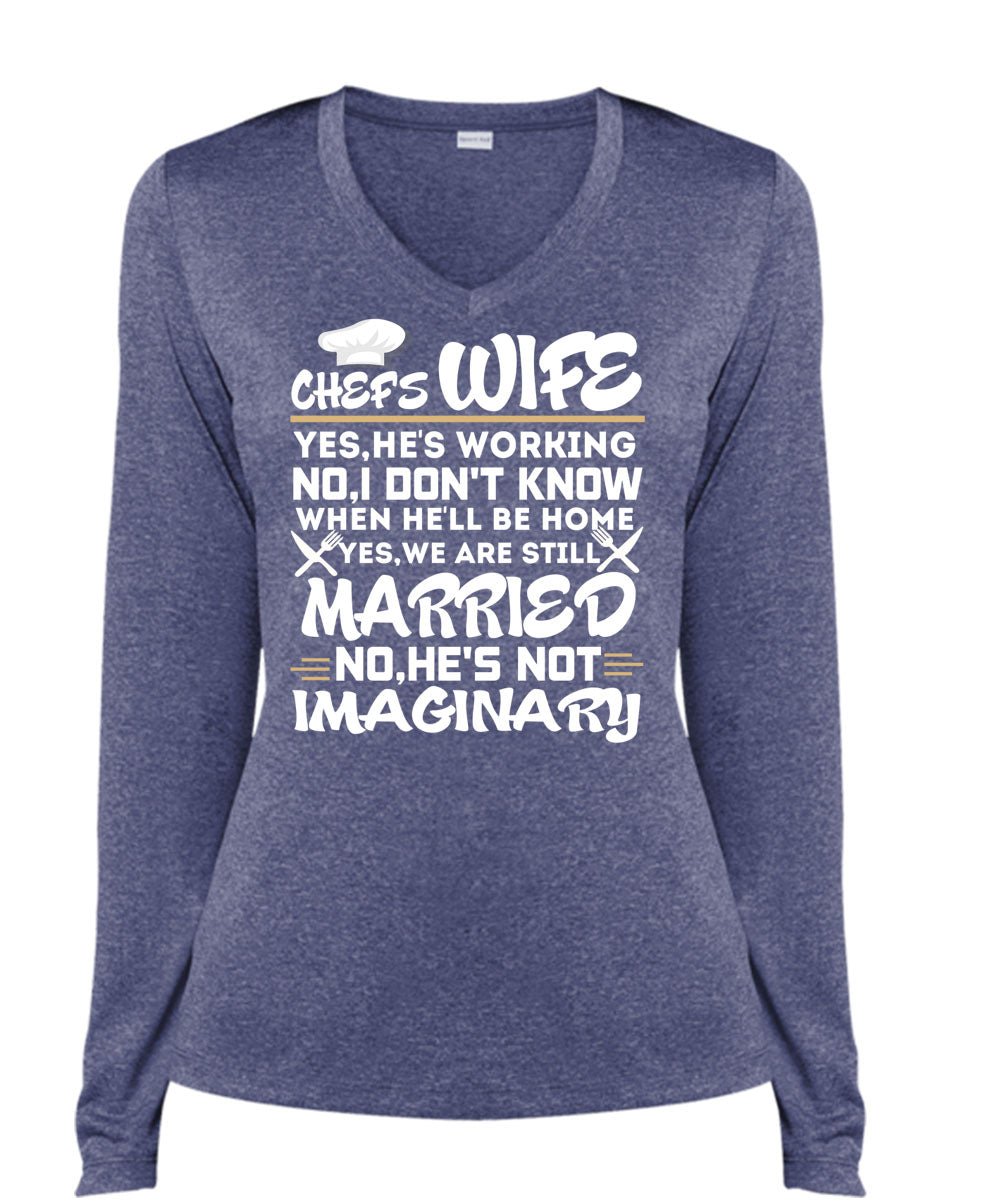 Chef's Wife He's Working T Shirt, He's Not Imaginary T Shirt, Cool Shirt (Ladies LS Heather V-Neck)
