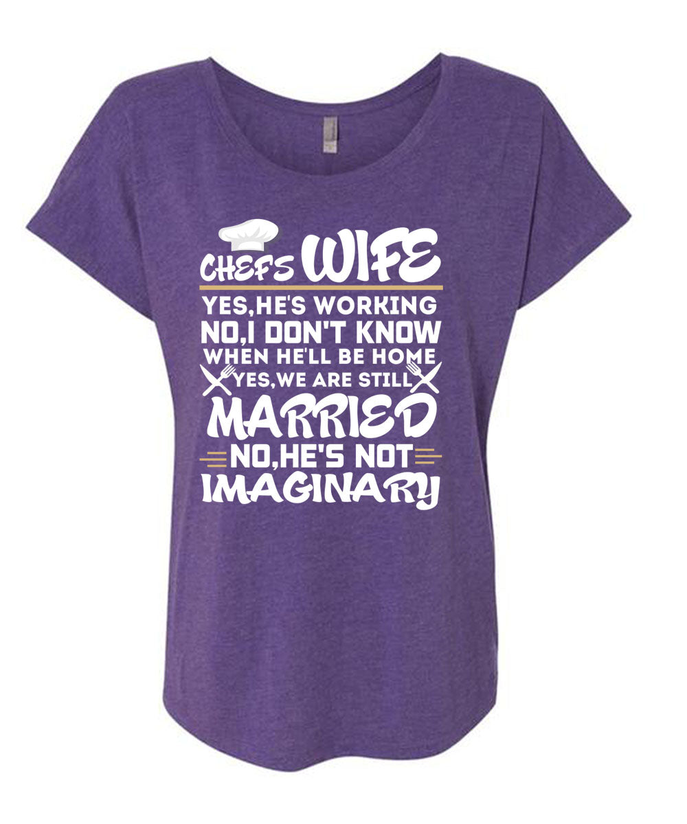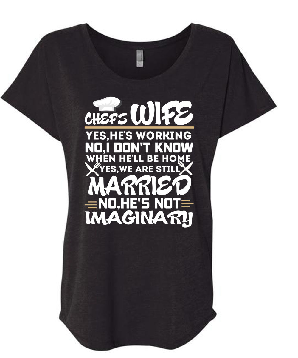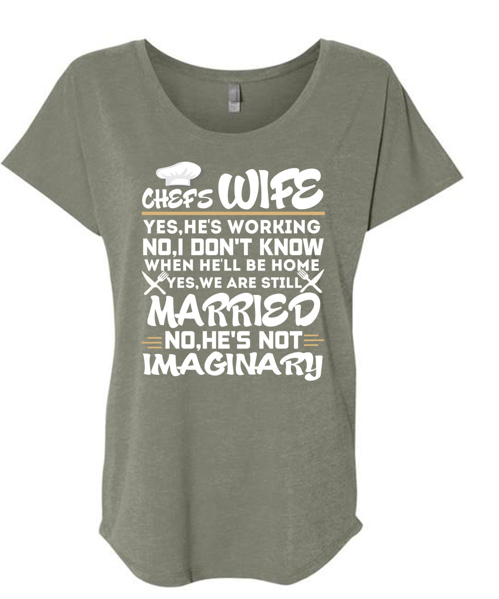 Chef's Wife He's Working T Shirt, He's Not Imaginary T Shirt, Cool Shirt (Ladies' Triblend Dolman Sleeve)
