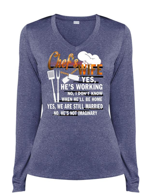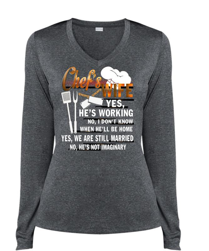 Chef's Wife T Shirt, We Are Still Married T Shirt, Cool Shirt (Ladies LS Heather V-Neck)