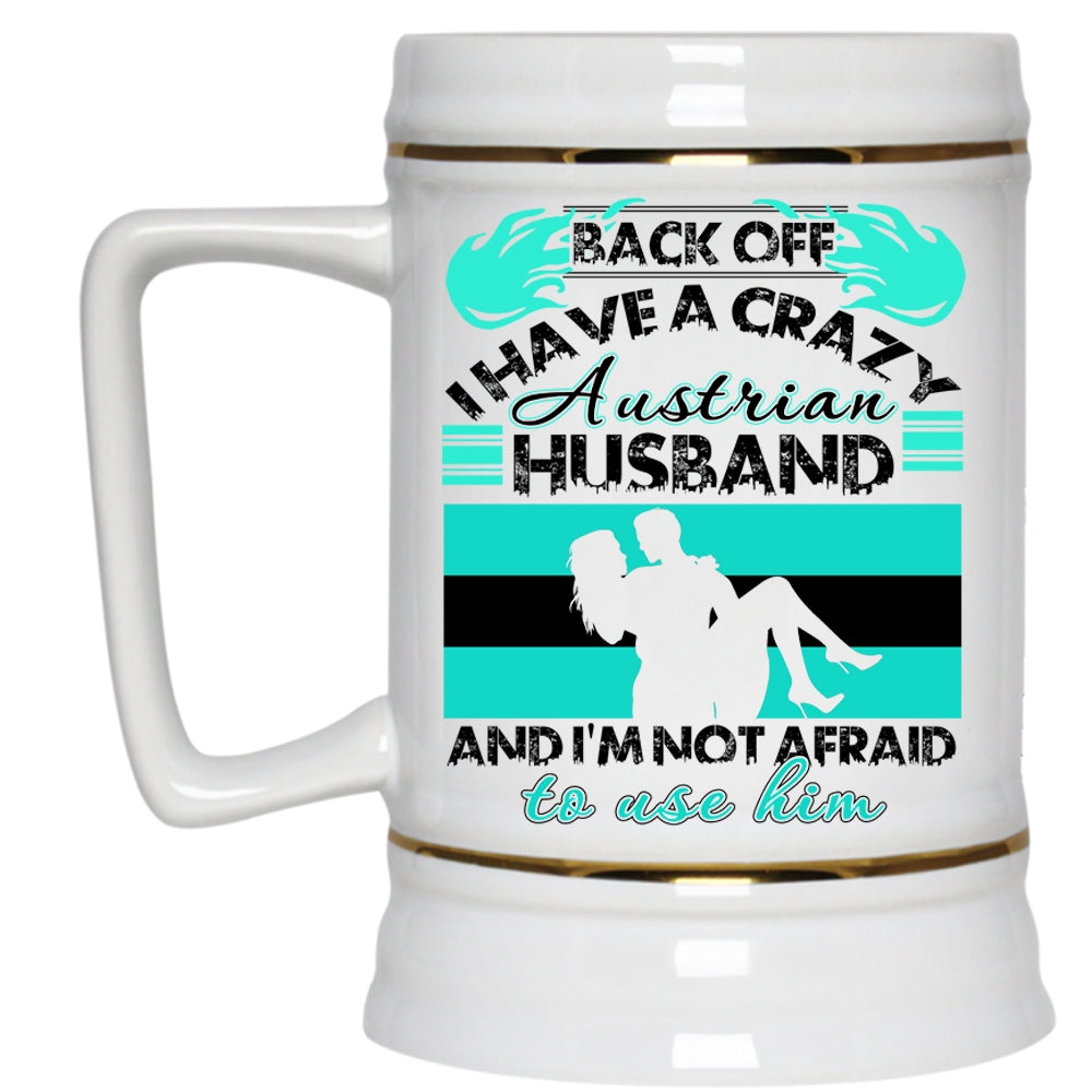 Cool Austrian Husband Beer Stein 22oz, I Have A Crazy Austrian Husband Beer Mug