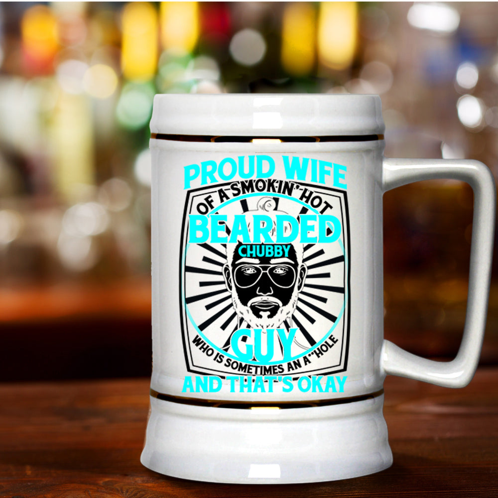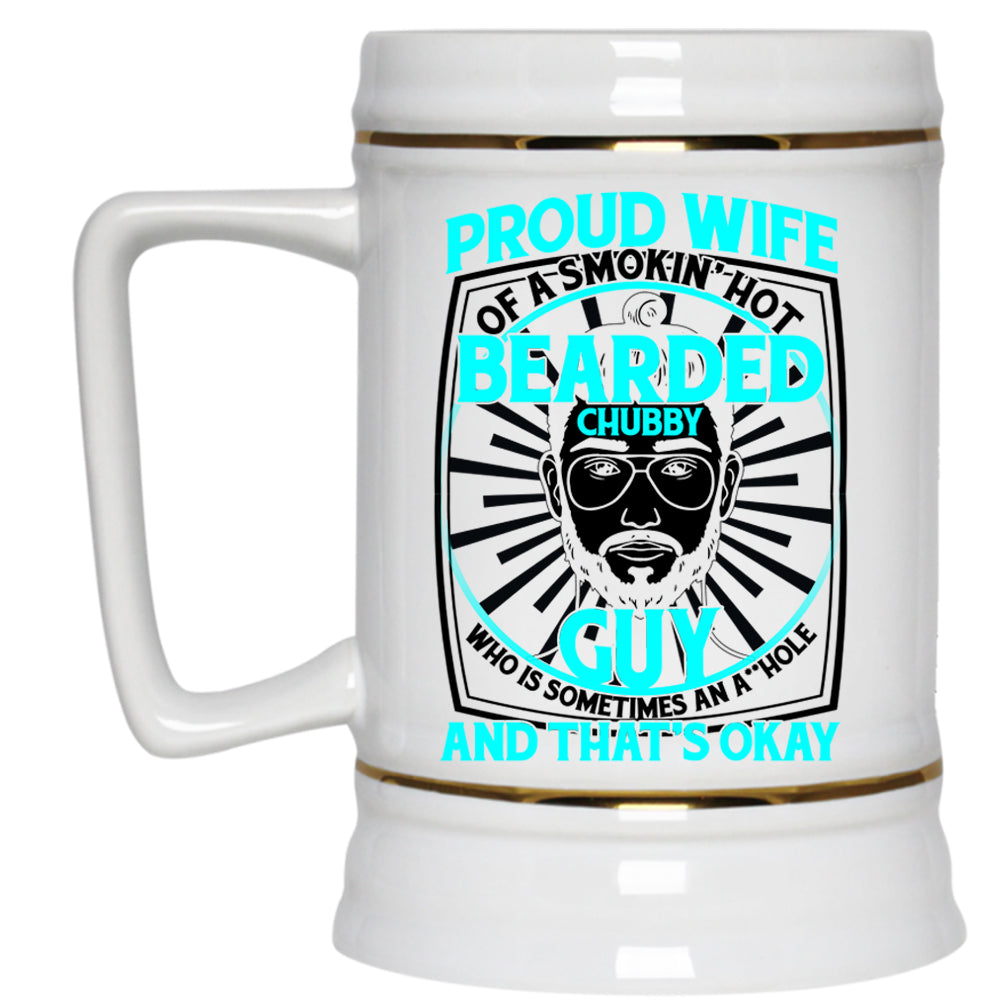 Cool Bearded Chubby Guy Beer Stein 22oz, Proud Wife Of A Hot Bearded Chubby Guy Beer Mug
