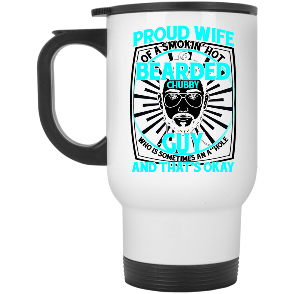 Cool Bearded Chubby Guy Travel Mug, Proud Wife Of A Hot Bearded Chubby Guy Mug