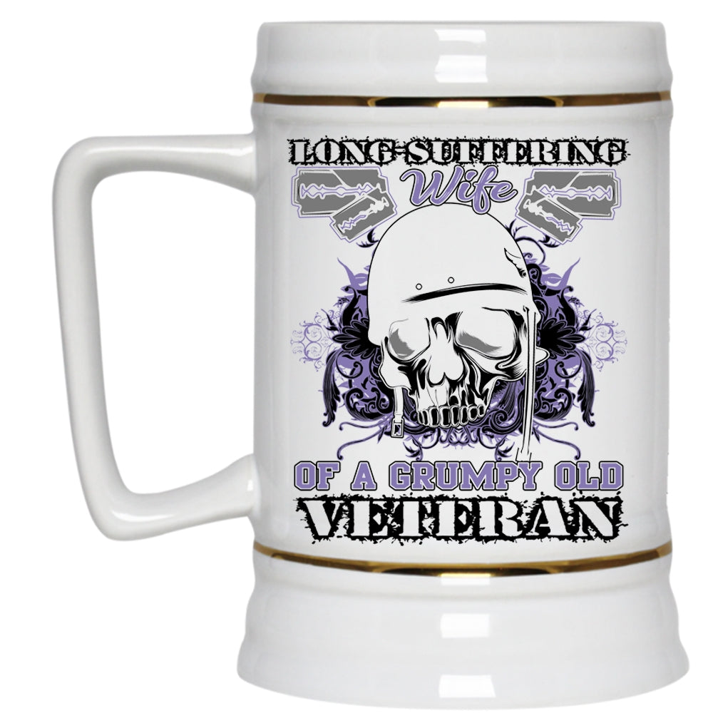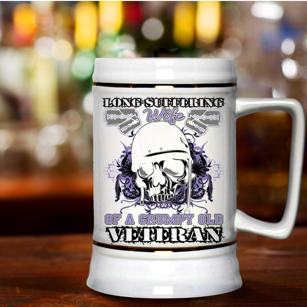 Cool Beer Stein 22oz, Long Suffering Wife Of A Grumpy Old Veteran Beer Mug