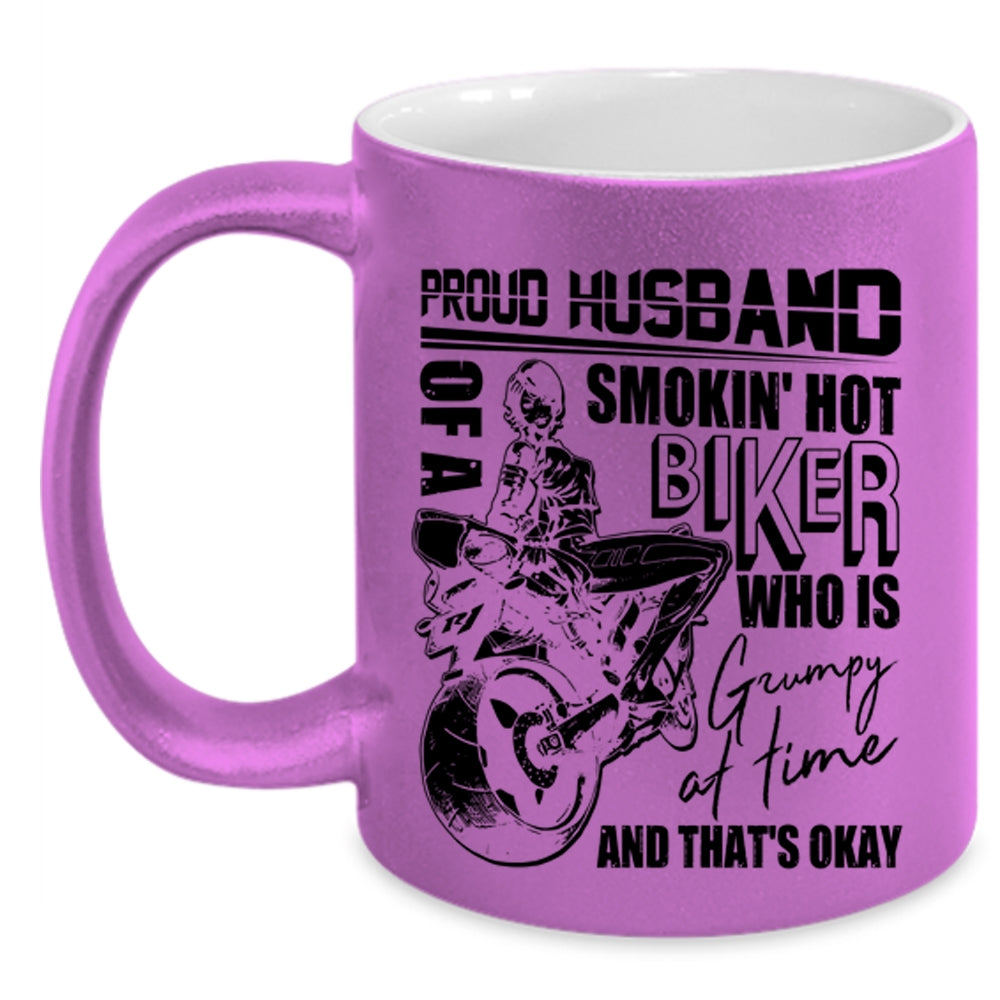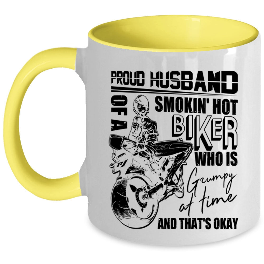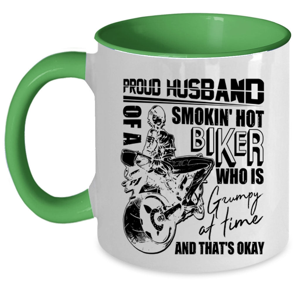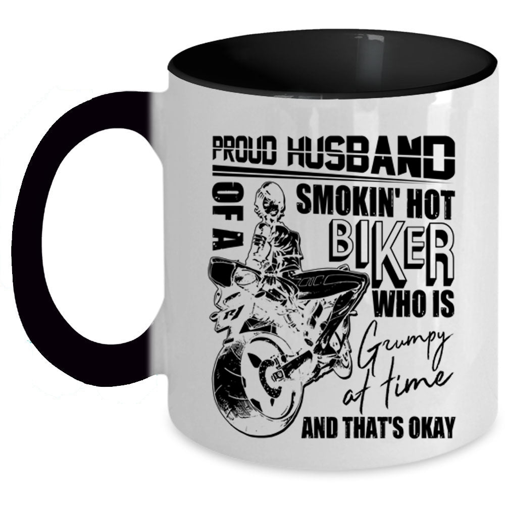 Cool Biker's Husband Coffee Mug, Proud Husband Of A Hot Biker Accent Mug