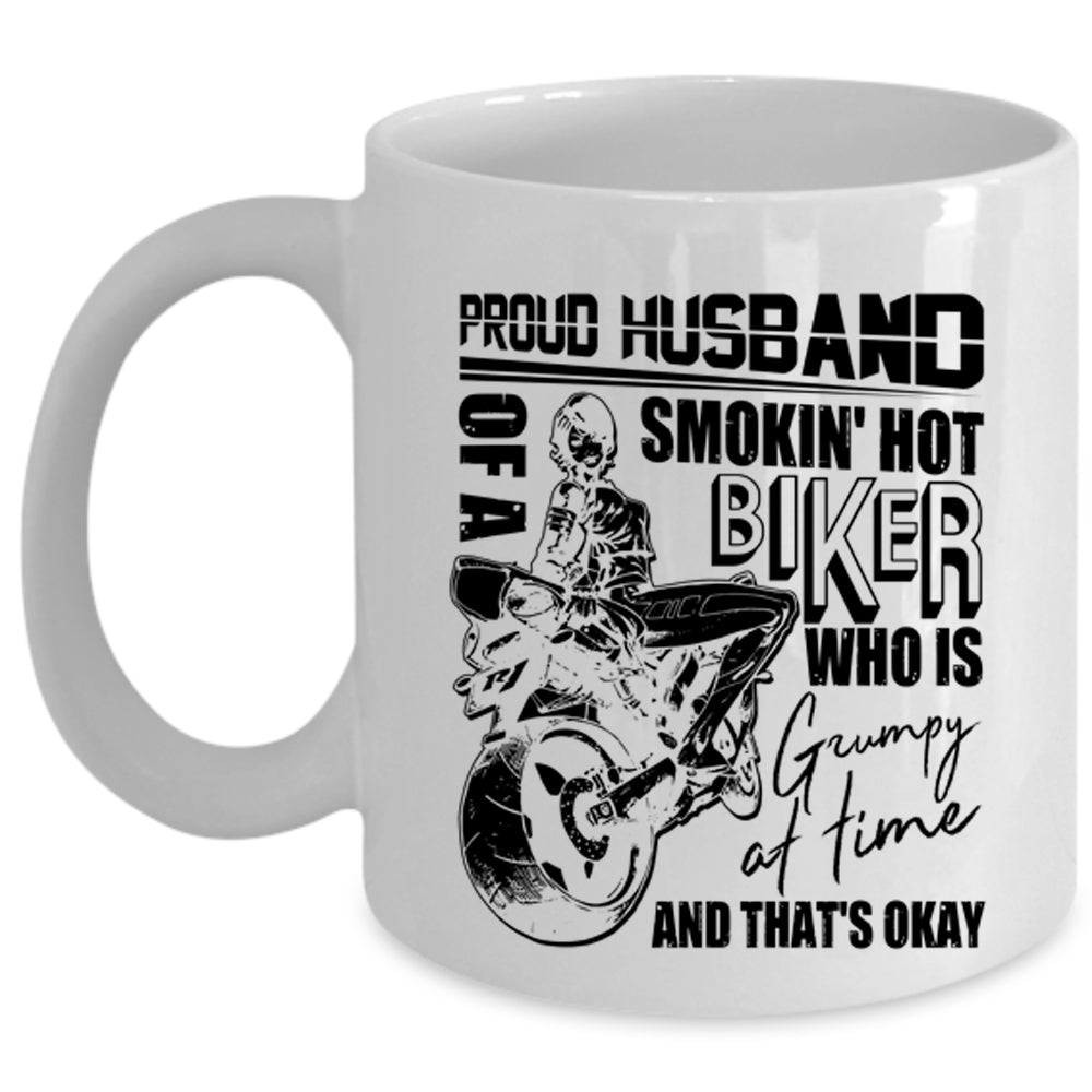 Cool Biker's Husband Coffee Mug, Proud Husband Of A Hot Biker Cup