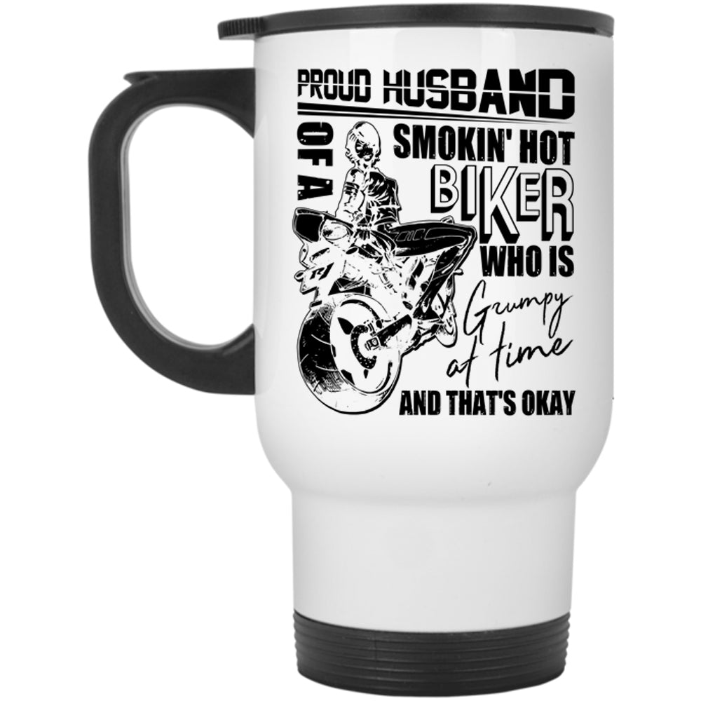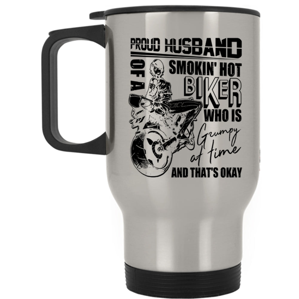 Cool Biker's Husband Travel Mug, Proud Husband Of A Hot Biker Mug