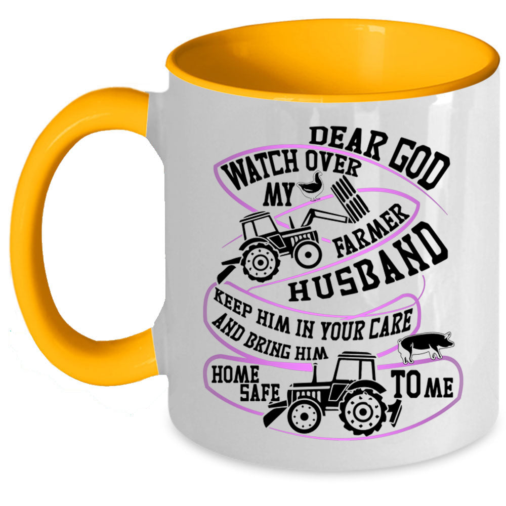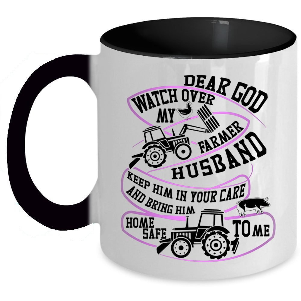 Cool Farmer Husband Coffee Mug, Watch Over My Farmer Husband Accent Mug