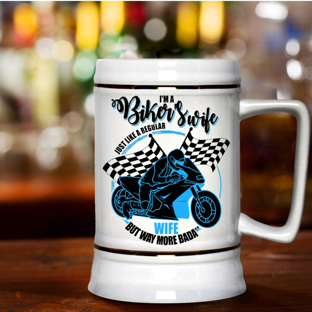 Cool Gift For Biker's Wife Beer Stein 22oz, I'm A Biker's Wife Beer Mug