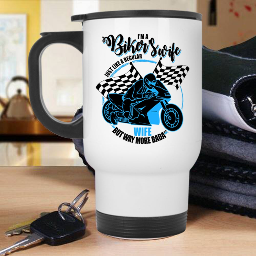 Cool Gift For Biker's Wife Travel Mug, I'm A Biker's Wife Mug