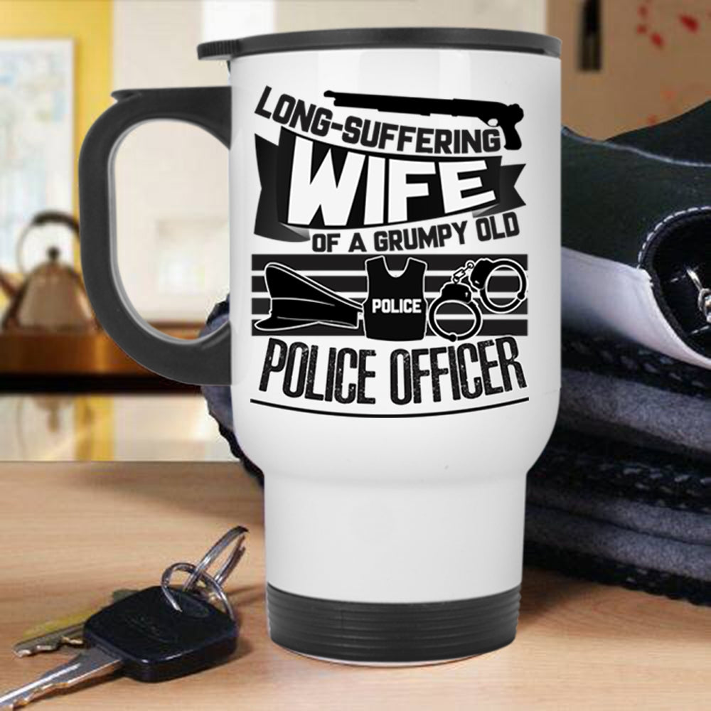 Cool Gift For Grandma Travel Mug, Wife Of A Grumpy Old Police Officer Mug