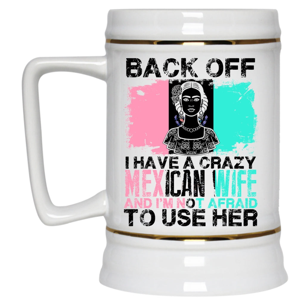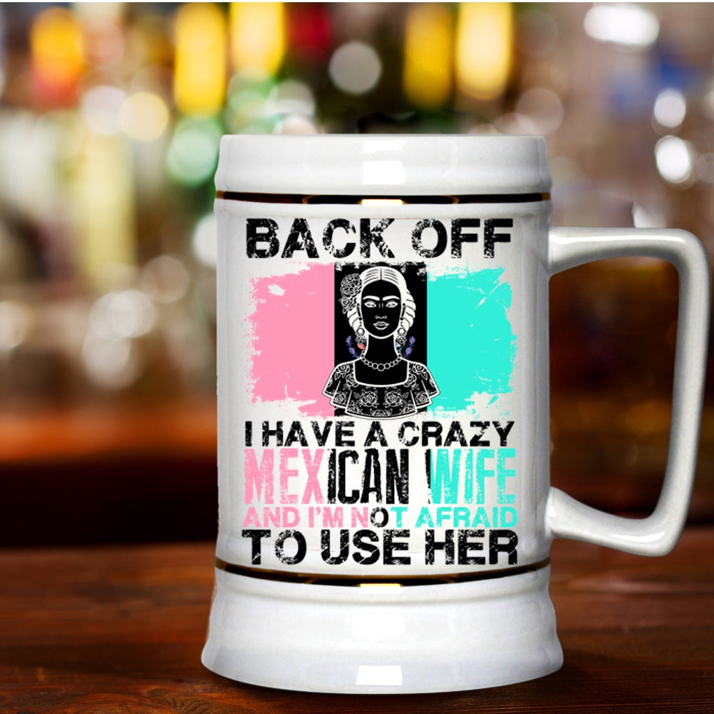 Cool Gift For My Husband Beer Stein 22oz, I Have A Crazy Mexican Wife Beer Mug