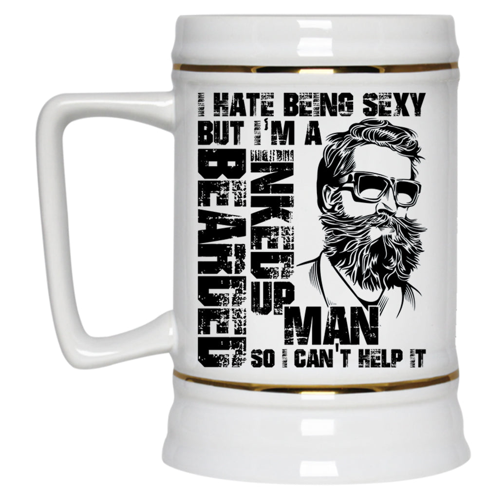 Cool Gift For My Husband Beer Stein 22oz, I'm A Bearded Inked Up Man Beer Mug