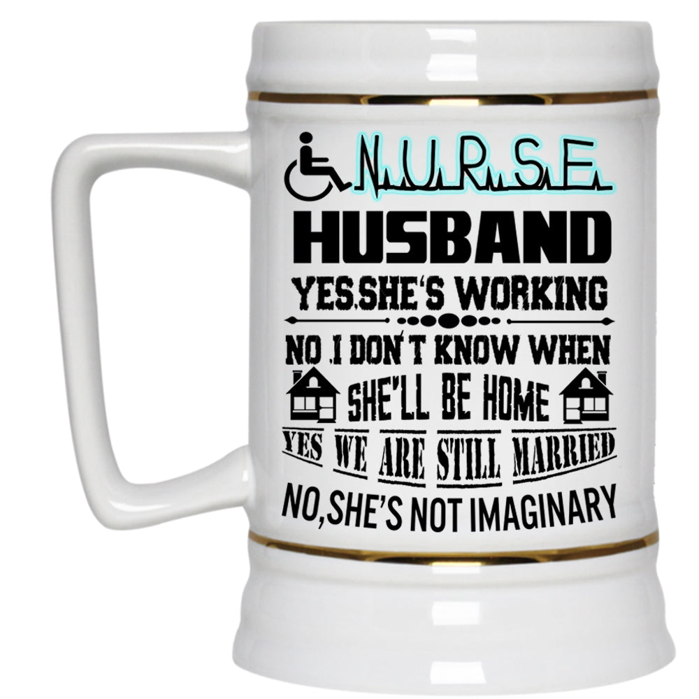 Cool Gift For My Husband Beer Stein 22oz, Nurse's Husband Beer Mug