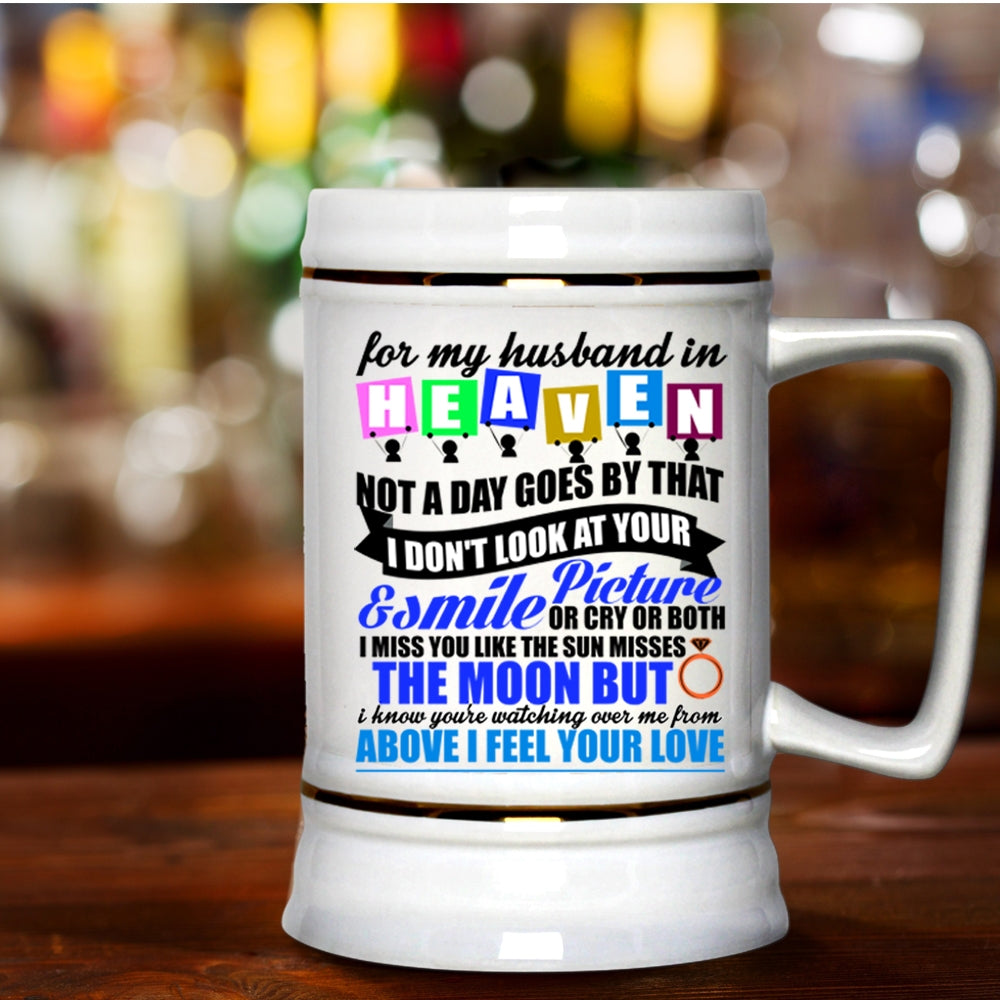 Cool Gift For My Wife Beer Stein 22oz, For My Husband In Heaven Beer Mug