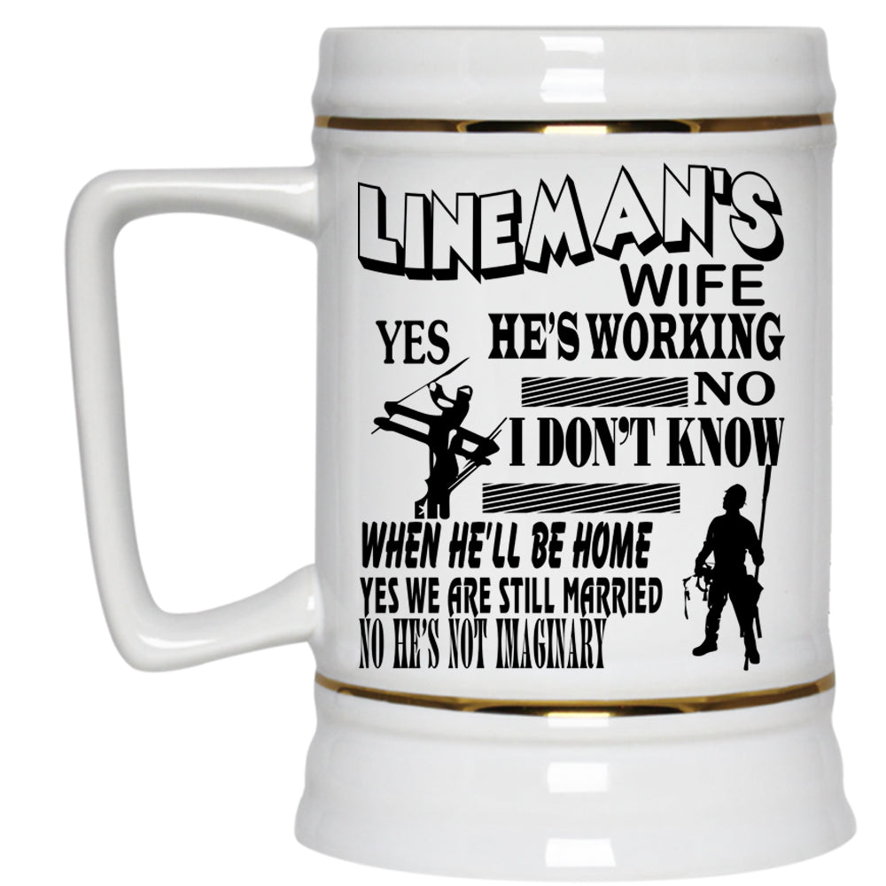 Cool Gift For Wedding Beer Stein 22oz, Lineman's Wife Beer Mug