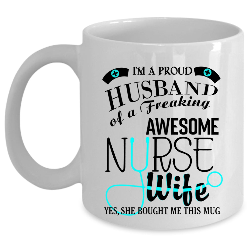 Cool Husband Coffee Mug, I'm A Proud Husband Of A Nurse Wife Cup