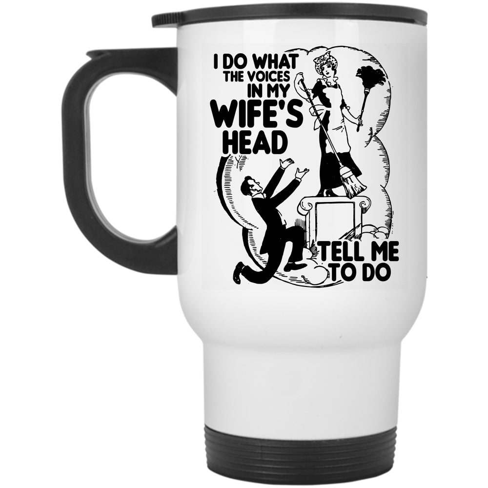 Cool Husband Travel Mug, I Do What The Voices In My Wife's Head Mug