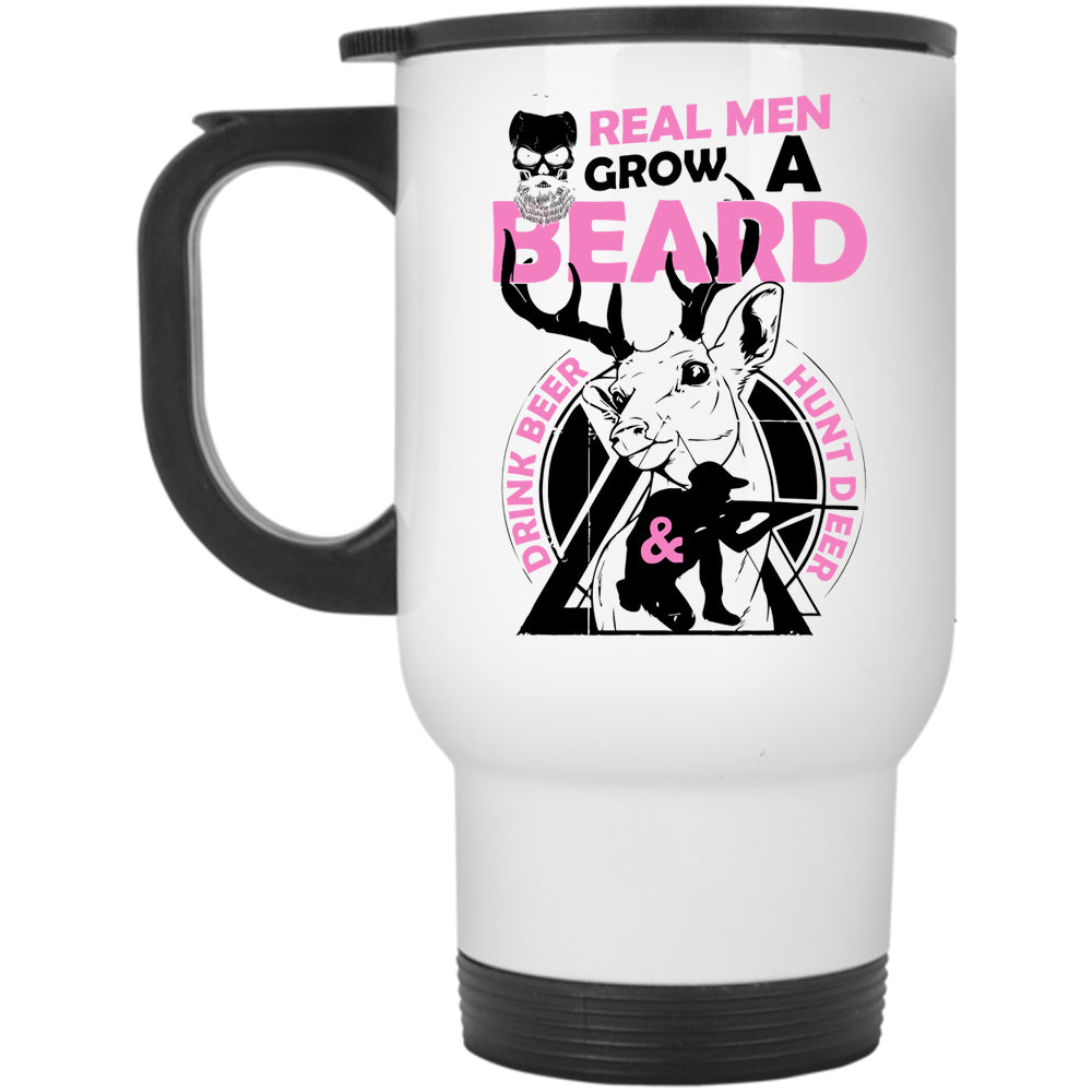 Cool Husband Travel Mug, Real Men Grow A Beard Drink Beer And Hunt Deer Mug