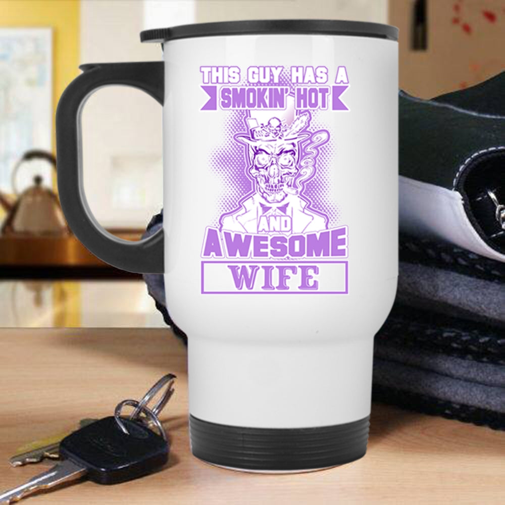 Cool Husband Travel Mug, This Guy Has A Hot And Awesome Wife Mug