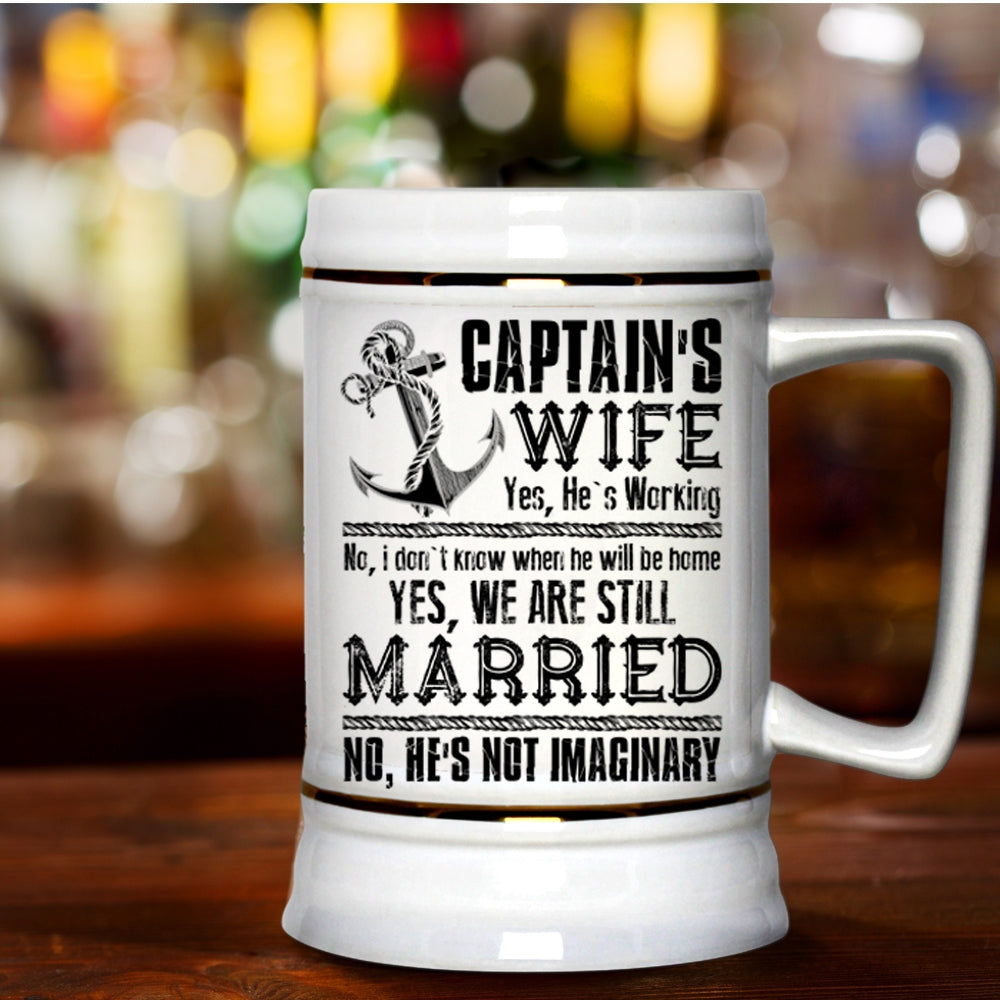 Cool Just Married Beer Stein 22oz, Captain's Wife Beer Mug