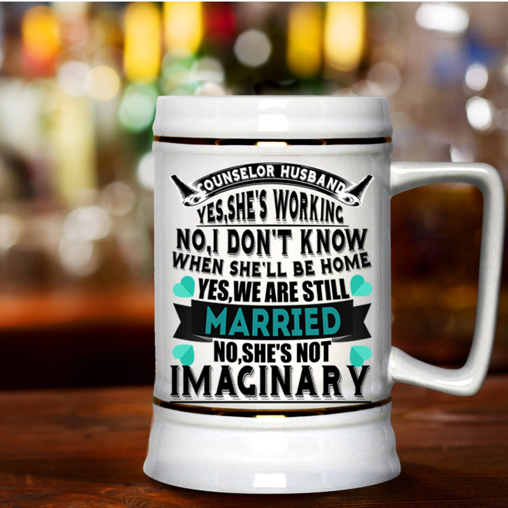 Cool Just Married Beer Stein 22oz, Counselor's Husband Beer Mug