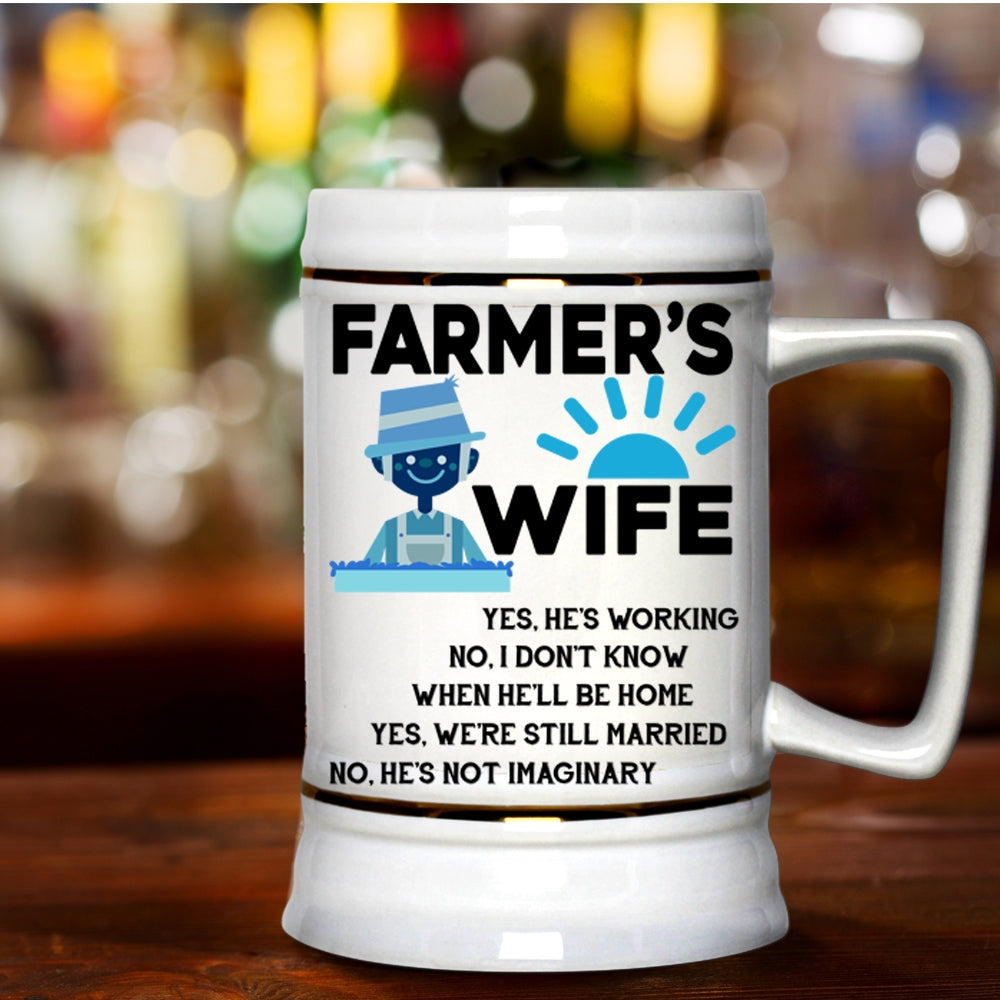 Cool Just Married Beer Stein 22oz, Farmer's Wife Beer Mug