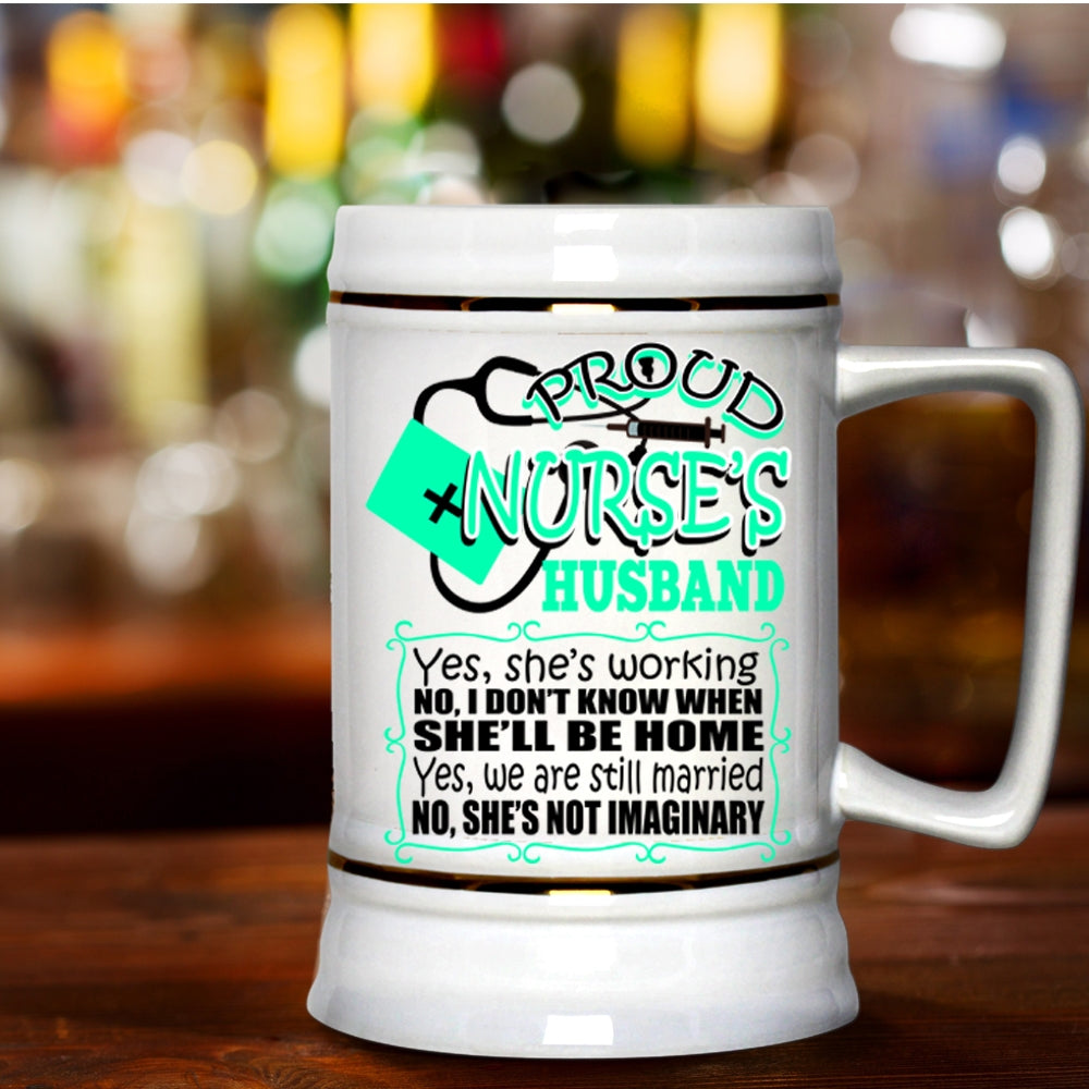 Cool Just Married Beer Stein 22oz, Proud Nurse's Husband Beer Mug
