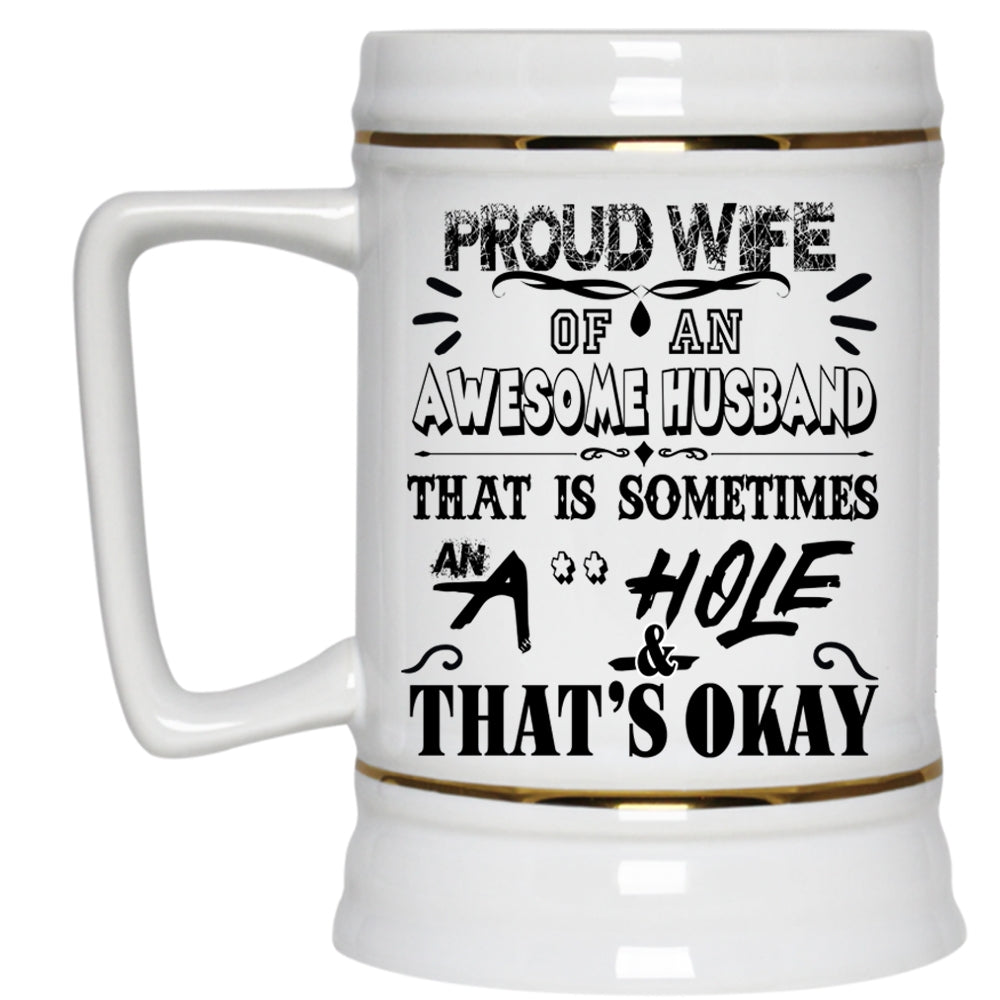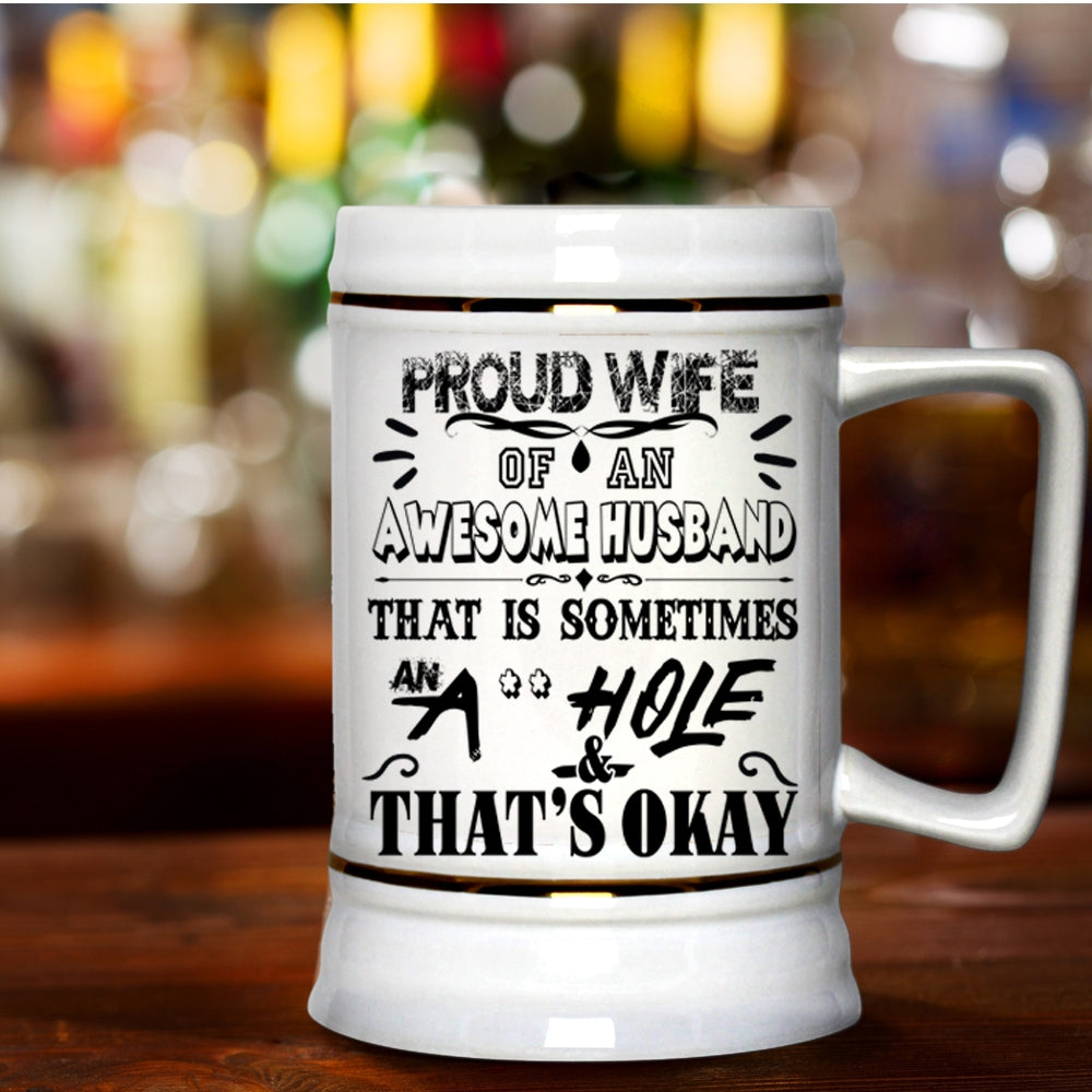 Cool Just Married Beer Stein 22oz, Proud Wife Of An Awesome Husband Beer Mug