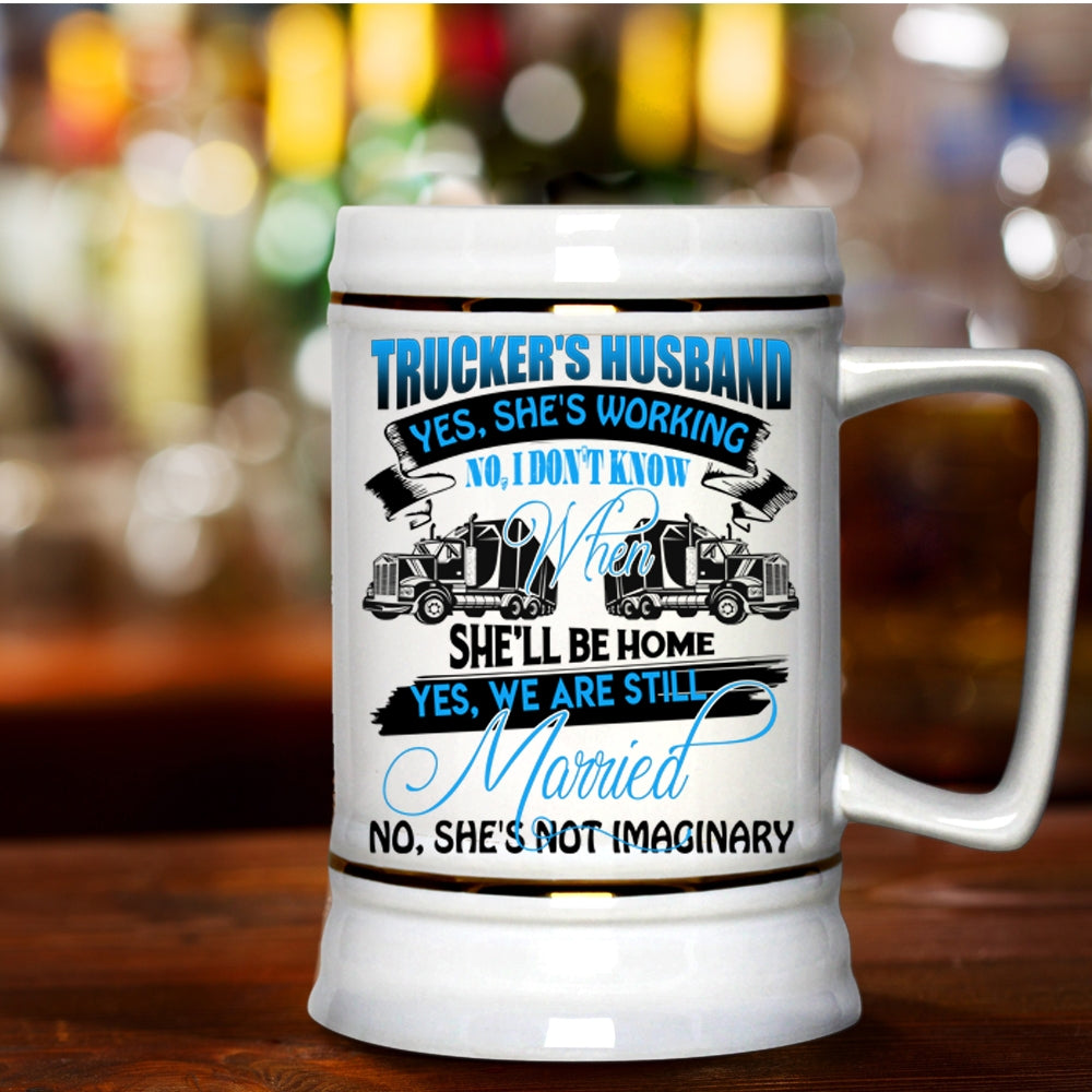 Cool Just Married Beer Stein 22oz, Trucker's Husband Beer Mug