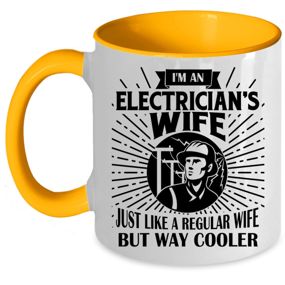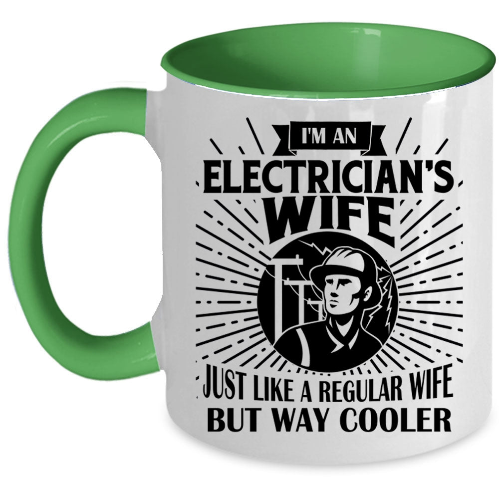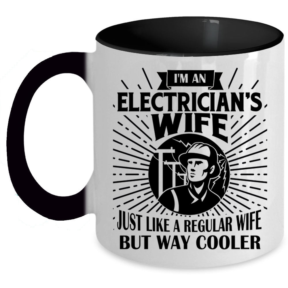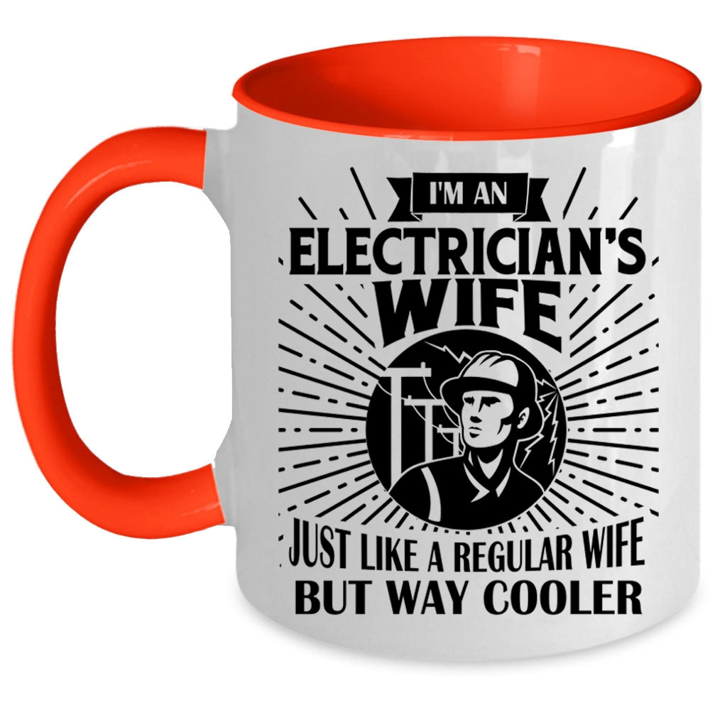 Cool Just Married Coffee Mug, I'm An Electrician's Wife Accent Mug