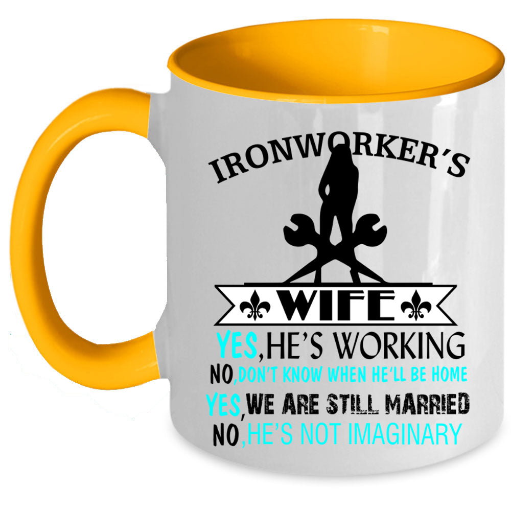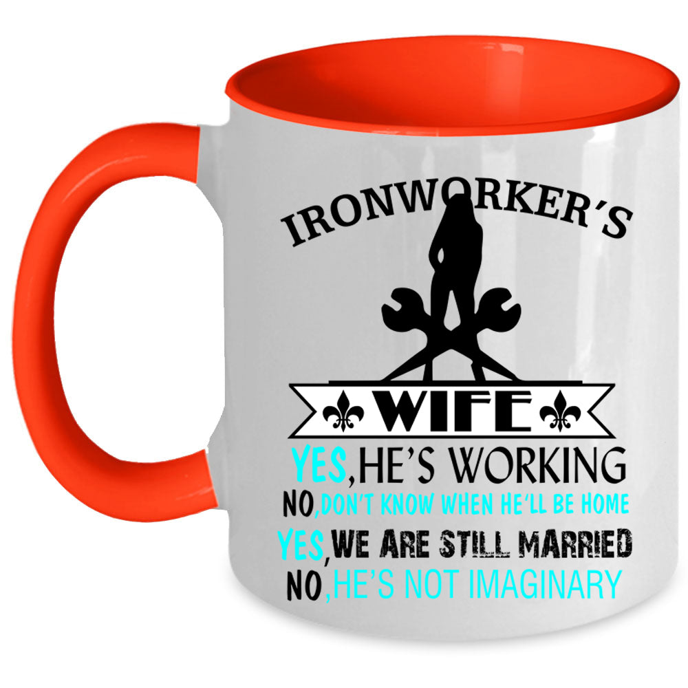 Cool Just Married Coffee Mug, Ironworker's Wife Accent Mug