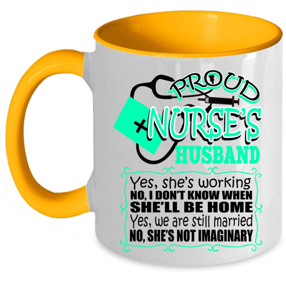 Cool Just Married Coffee Mug, Proud Nurse's Husband Accent Mug