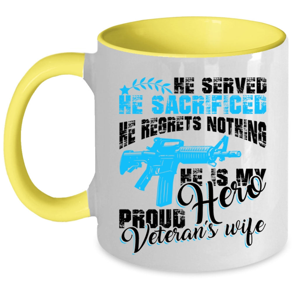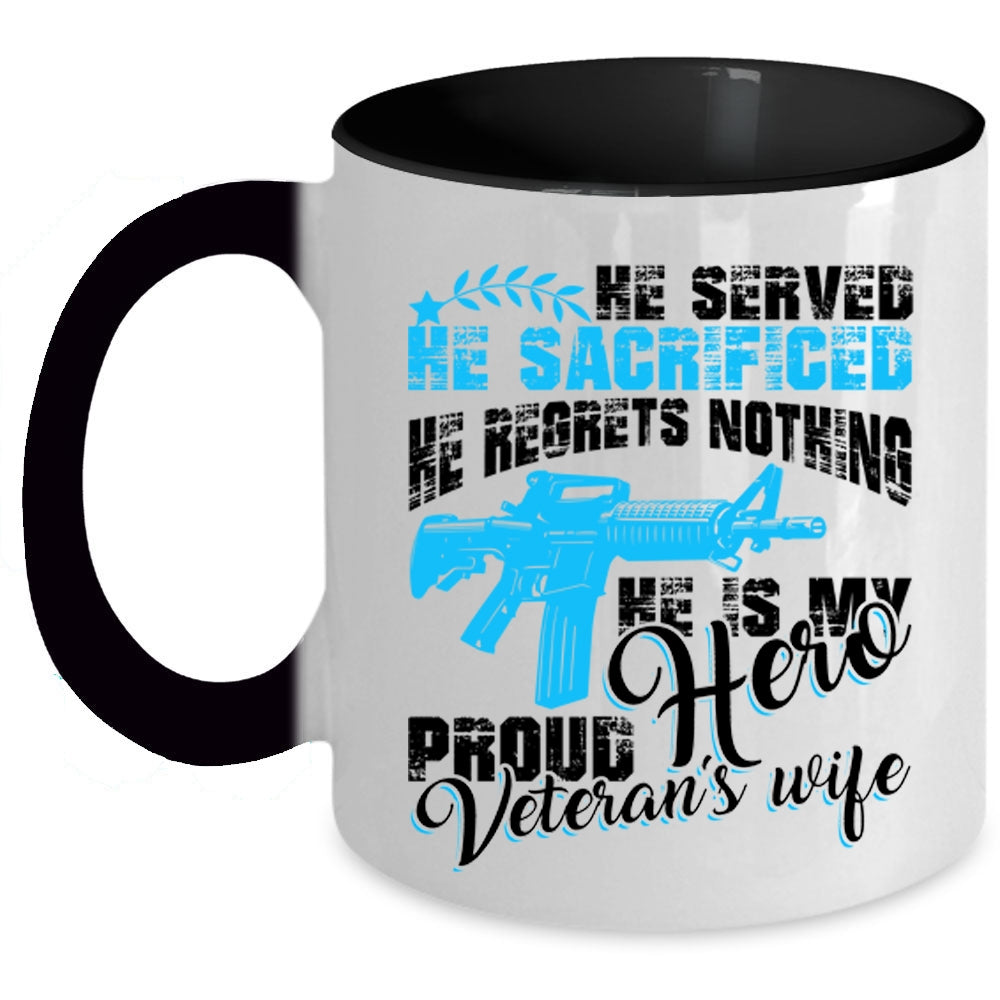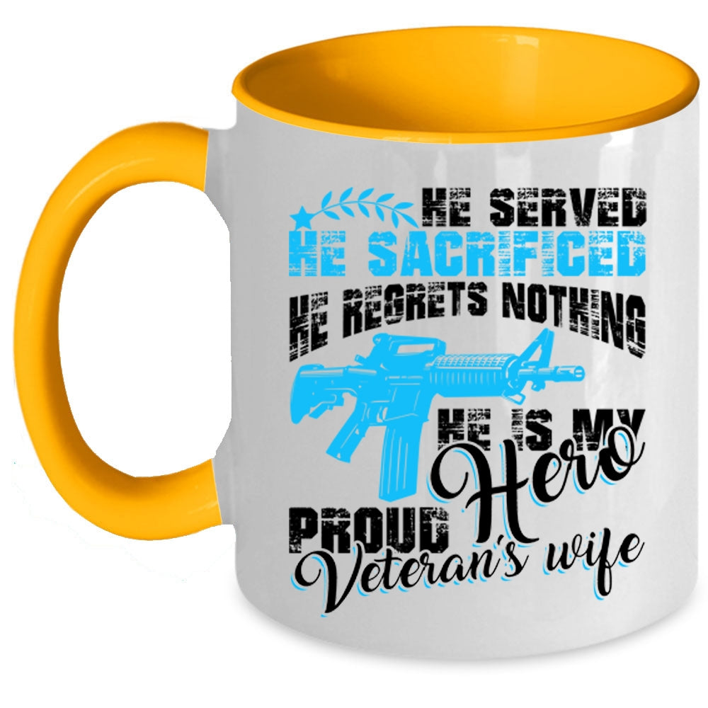 Cool Just Married Coffee Mug, Proud Veteran's Wife Accent Mug