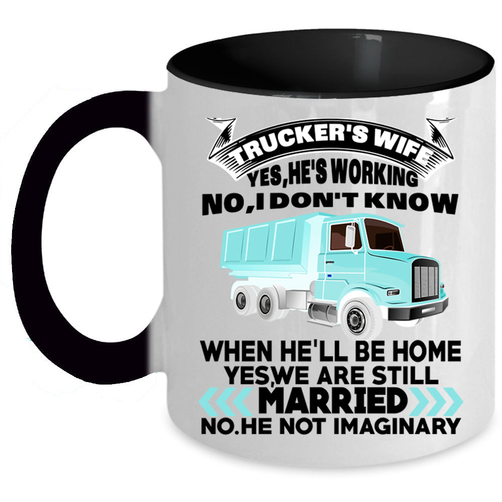 Cool Just Married Coffee Mug, Trucker's Wife Accent Mug