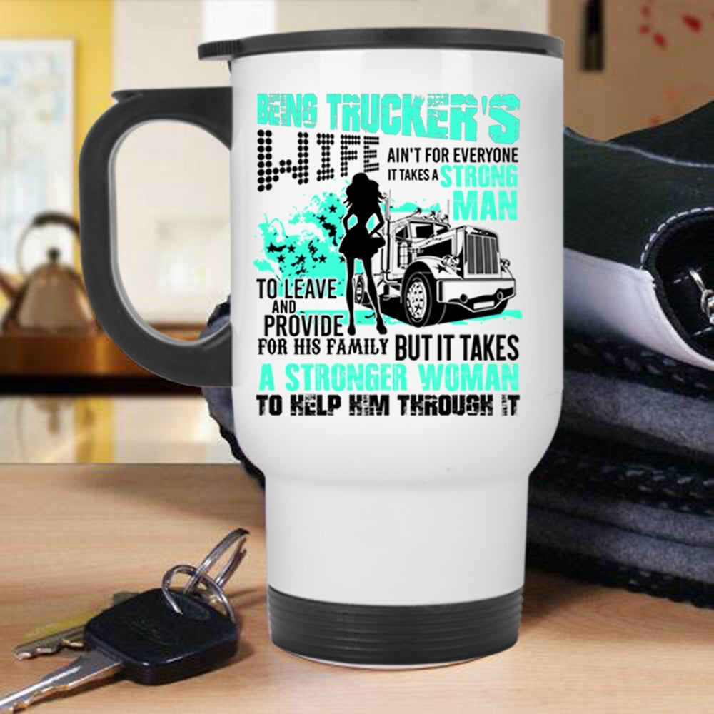 Cool Just Married Travel Mug, Being Trucker's Wife Mug