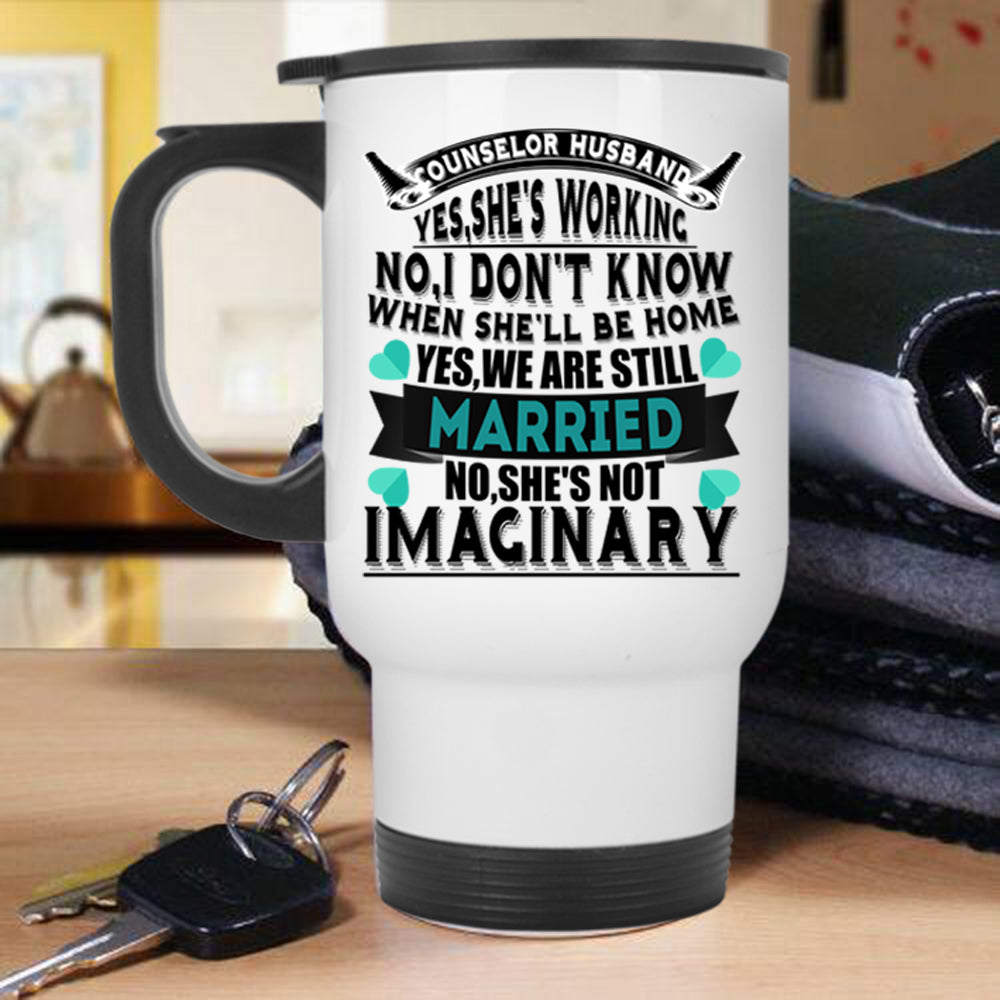 Cool Just Married Travel Mug, Counselor's Husband Mug