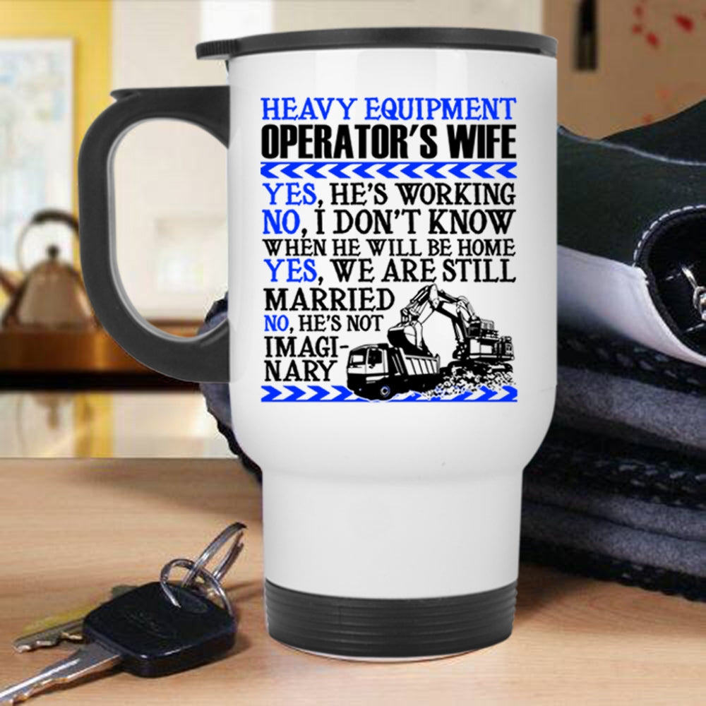 Cool Just Married Travel Mug, Heavy Equipment Operator's Wife Mug