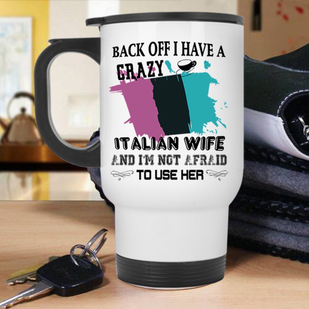 Cool Just Married Travel Mug, I Have A Crazy Italian Wife Mug