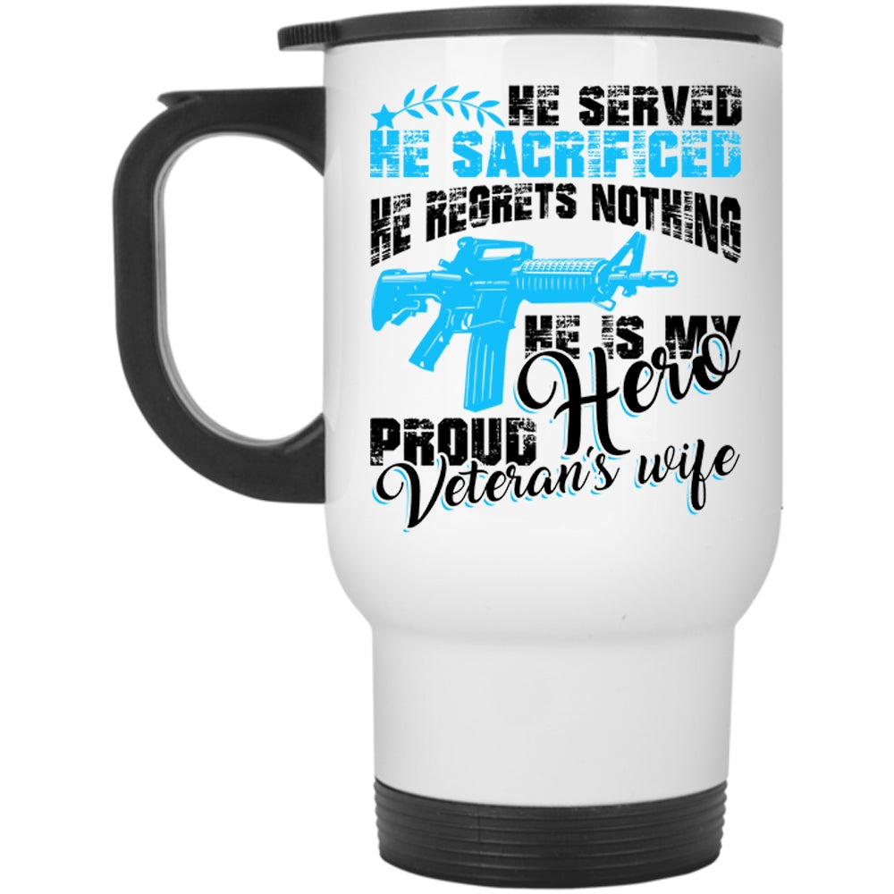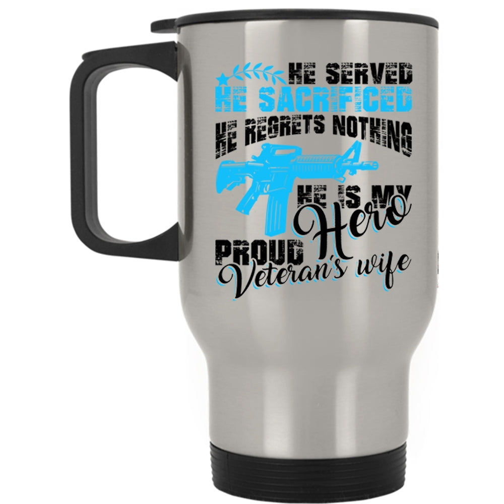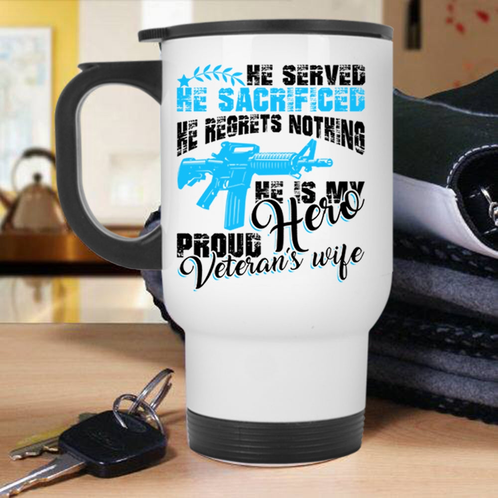 Cool Just Married Travel Mug, Proud Veteran's Wife Mug