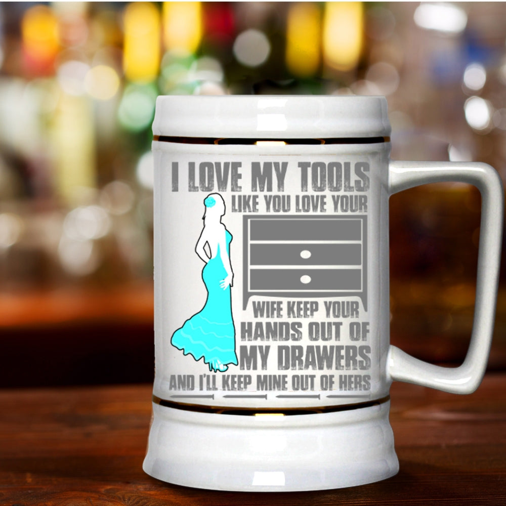 Cool Mechanics Beer Stein 22oz, I Love My Tools Like You Love Your Wife Beer Mug
